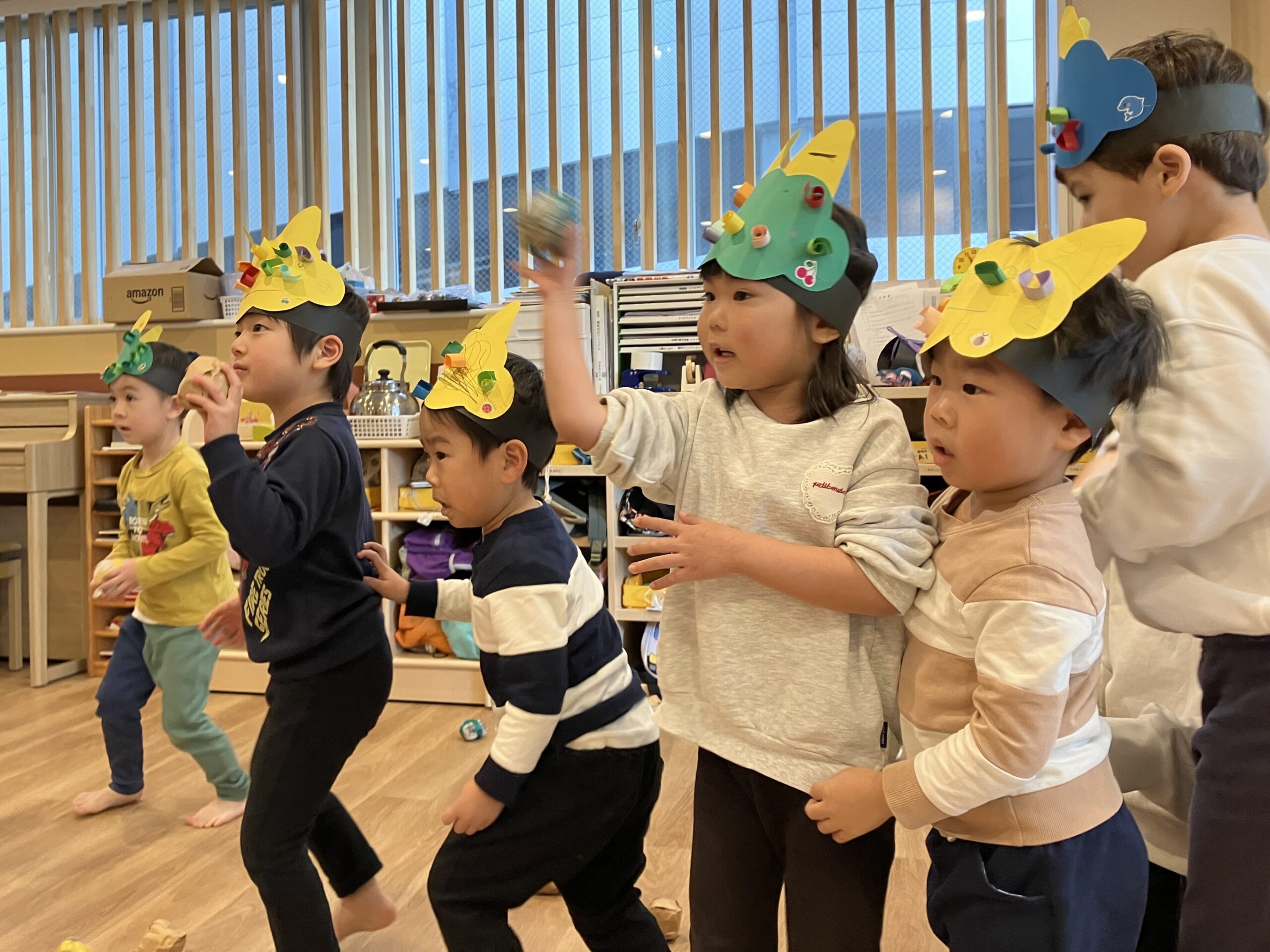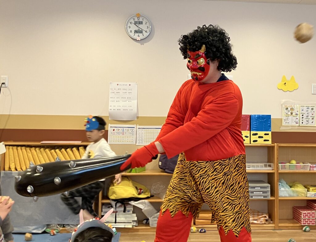 子どもたちは事前に作戦会議を行い、それぞれ役割を決めて臨んだ結果……怖くて逃げながらも懸命に鬼に立ち向かい、見事に鬼をやっつけました✨