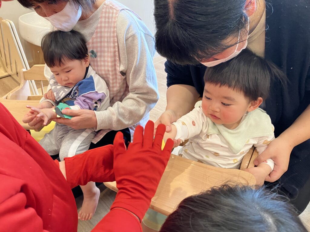 びっくりして泣き出す子もいましたが、先生と仲良くしている様子を見て少しずつ表情がやわらいでいきました😊💕