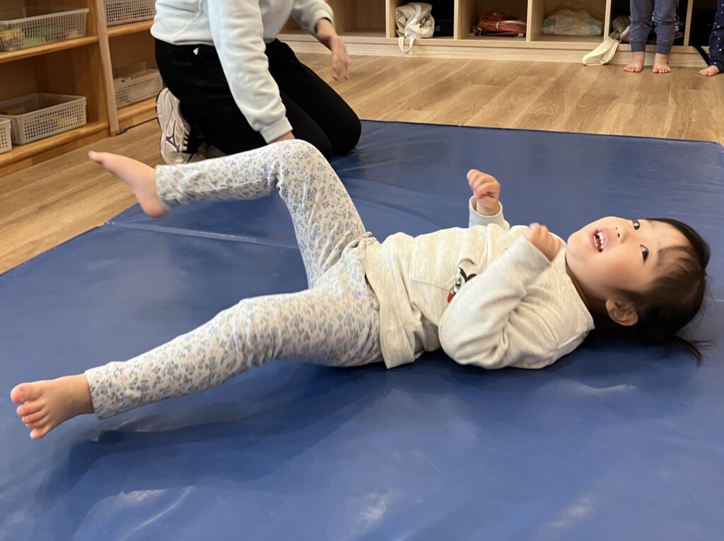 マットの上をゴロゴロ転がったり、前まわりを学びました✨