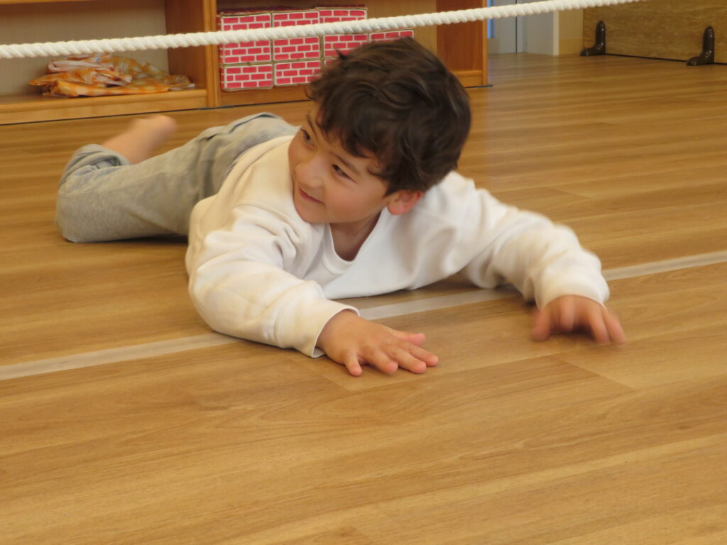 最後はわにさん歩きで縄の下をくぐり抜けました🐊✨ 縄に当たらないように慎重に!