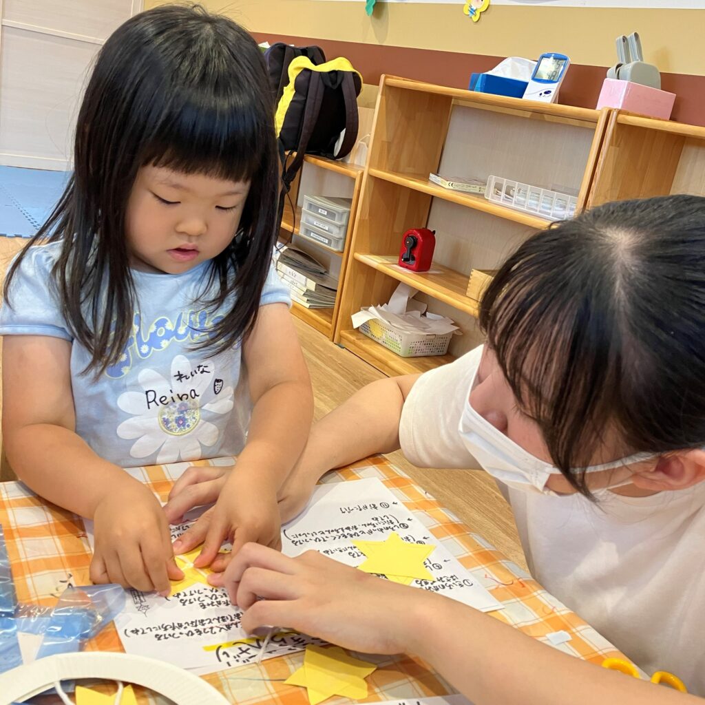 21日(金)の造形では、姫路医療専門学校 作業療法士科2年の学生さんと『短冊』を作りました!