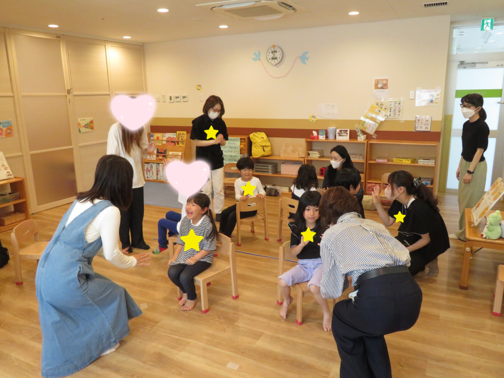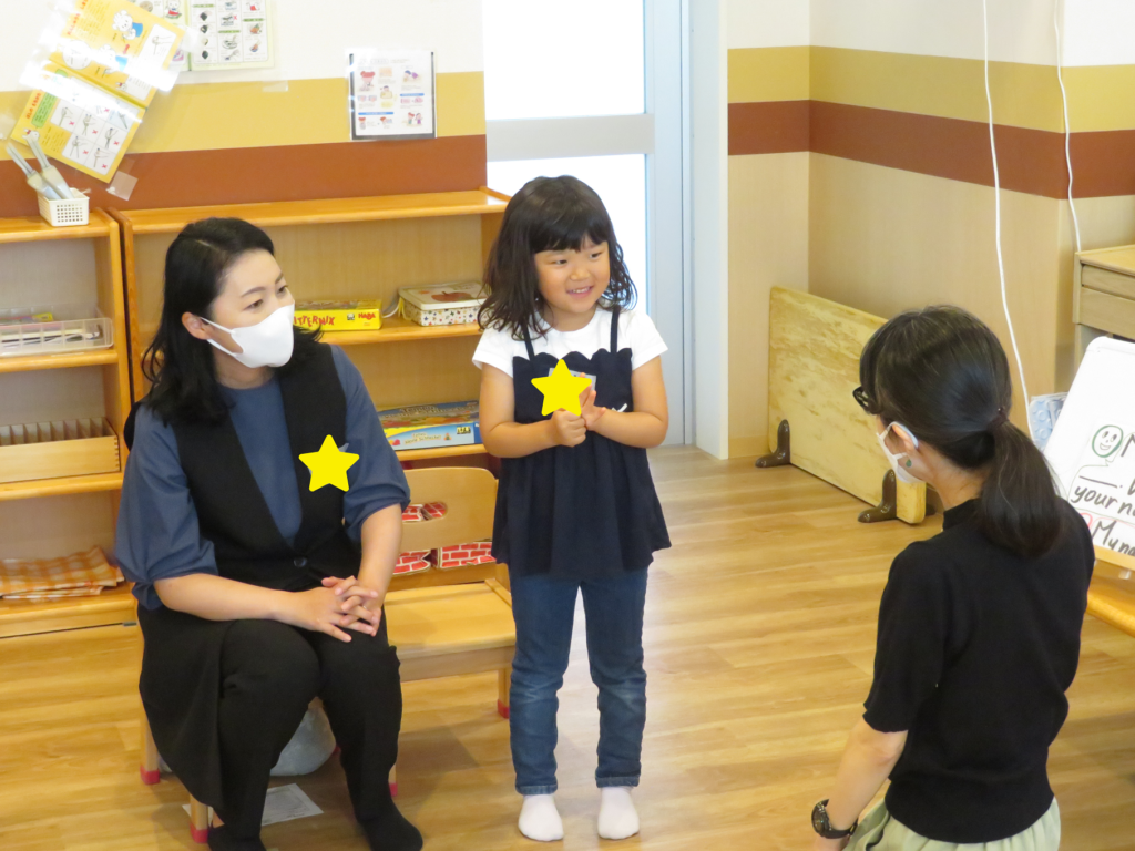 何度か練習した後は、子どもたちが椅子に座りルーレット形式で色んなお母さんと自己紹介をしました🤭❣