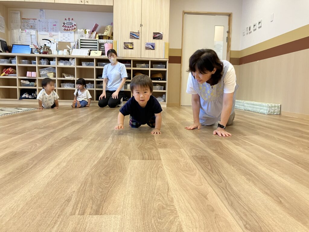 2歳児さんは、ハイハイをしながらゴールを目指すわんわんレース