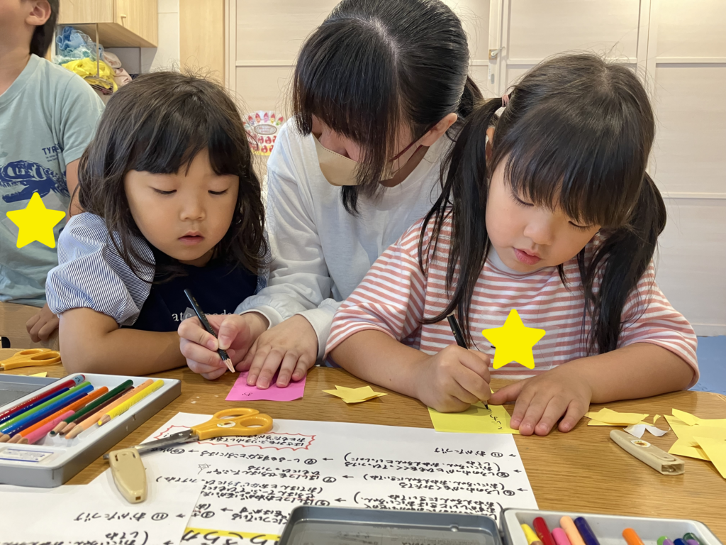 学生さんにお願いごとを書いてもらい、ゆらゆら揺らしながら完成した作品を眺めていました🥰