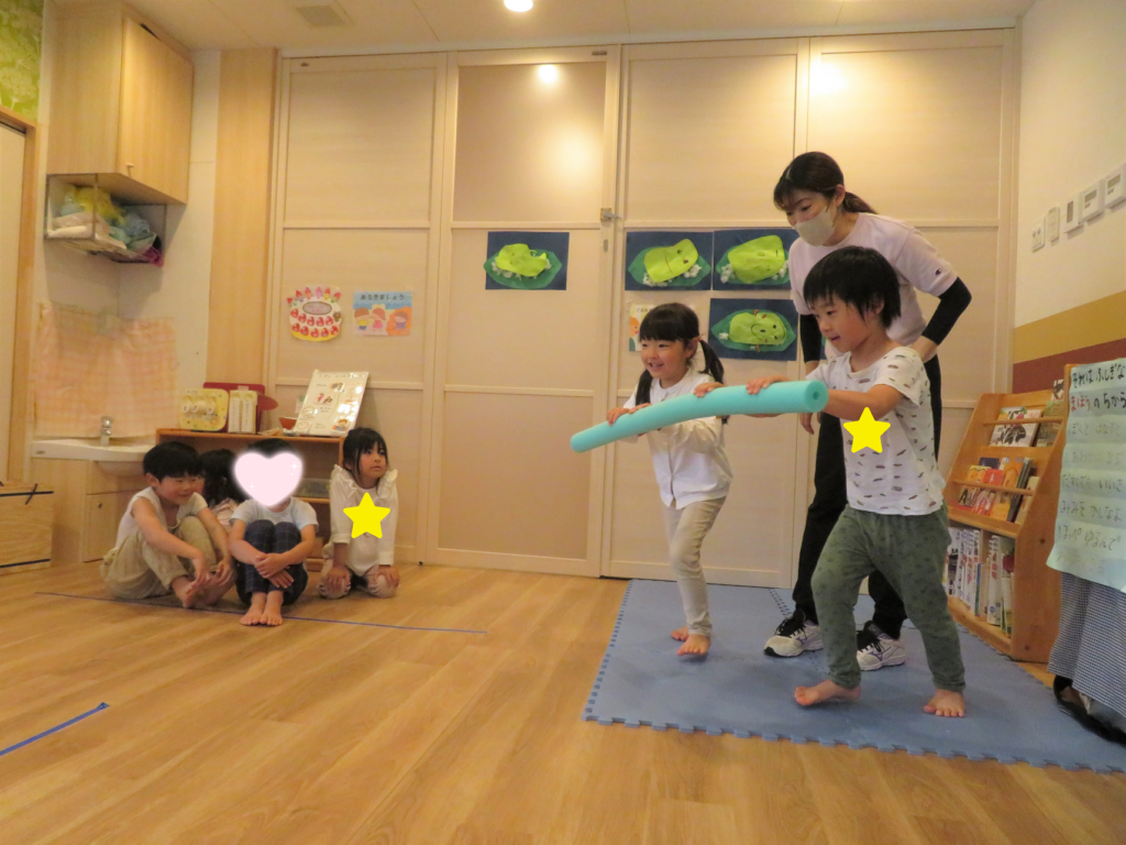21日(水)の体操では先生が持っていたポールとコーンに「これなに!?🤩✨」と興味津々!