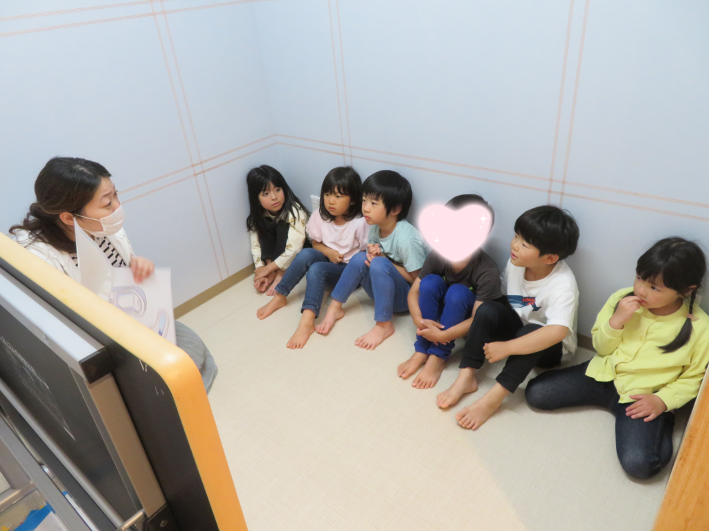 公衆トイレでは誘拐事件なども起きていることを知った年長さんは、真剣な様子でお話や対策を聞いた後に、外のトイレでは必ずお家の人と一緒に行くことを約束していました😉