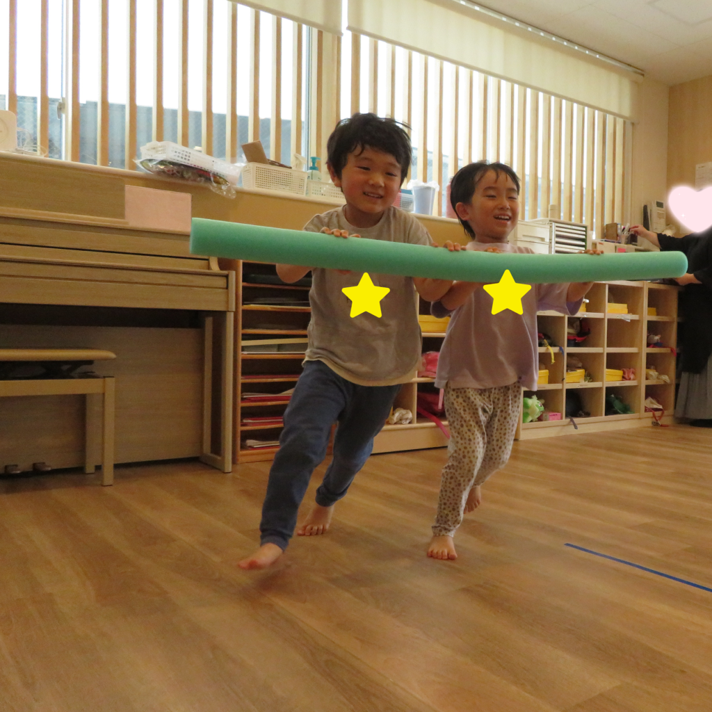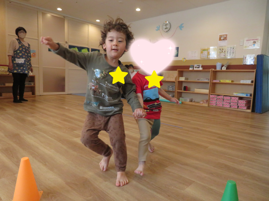 お友だちが転んでしまわないように、スピードを考えながら協力する姿が見られました😊