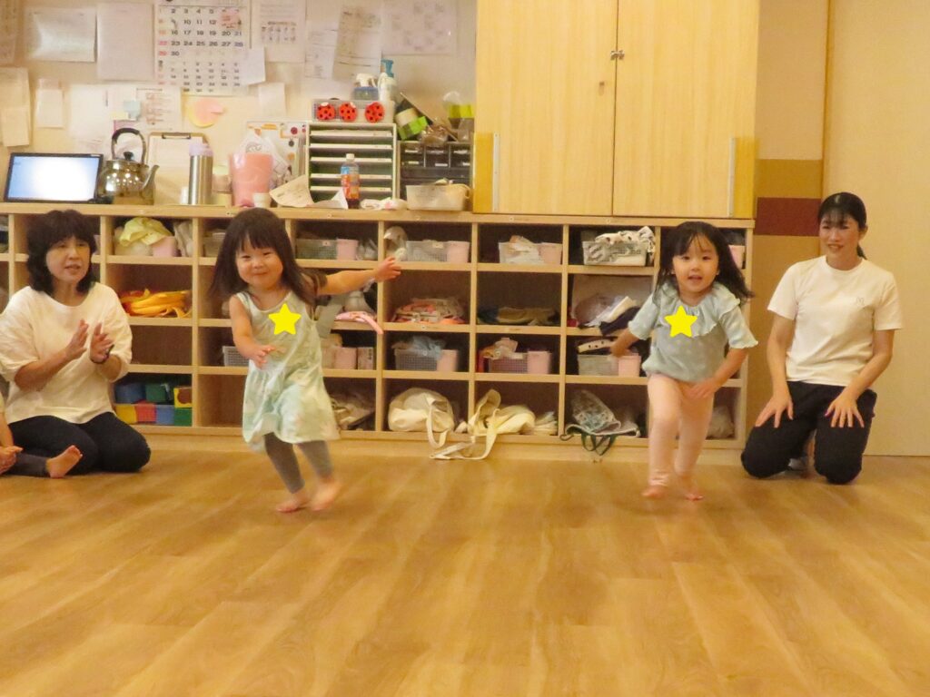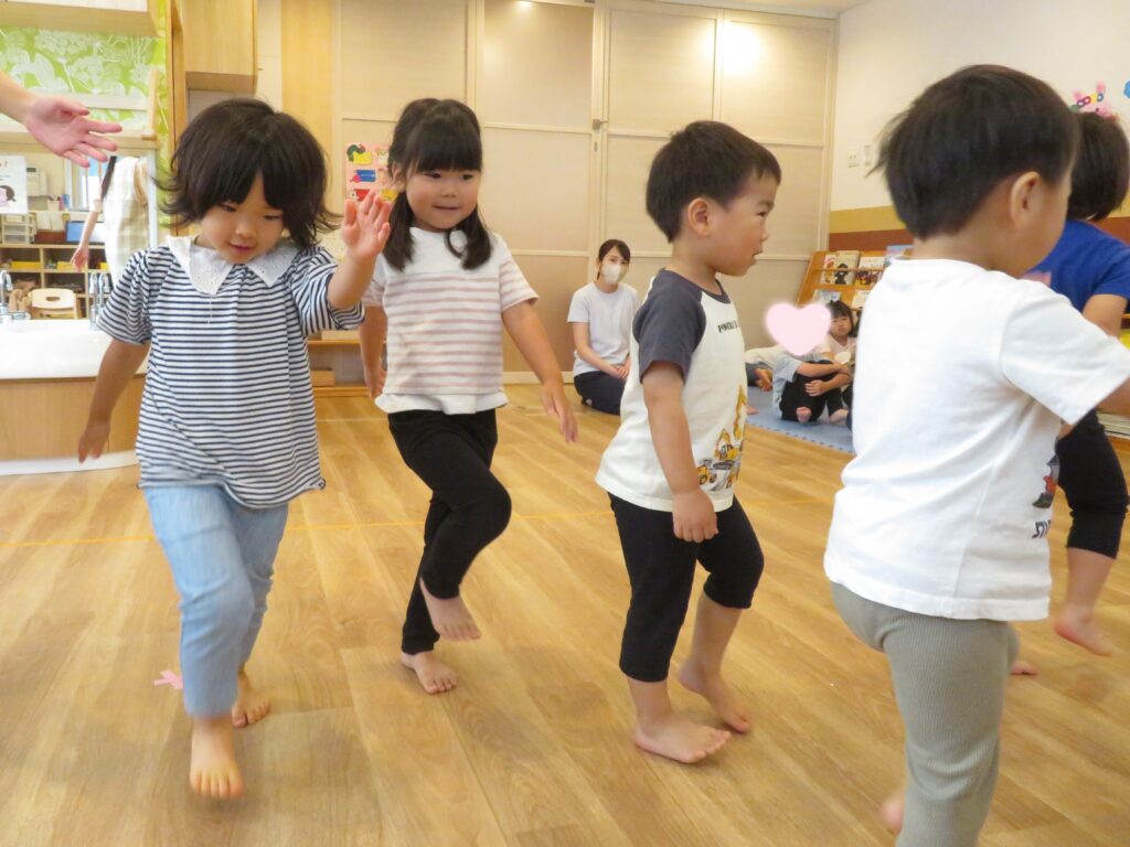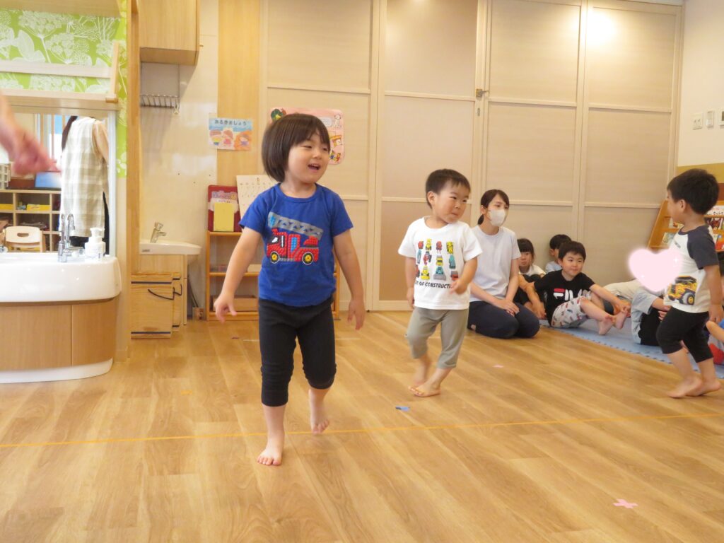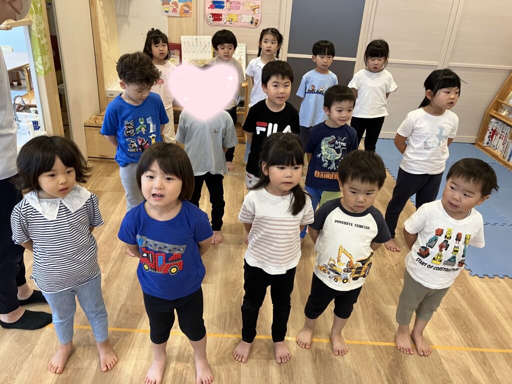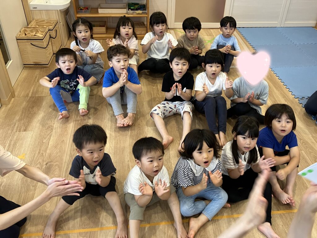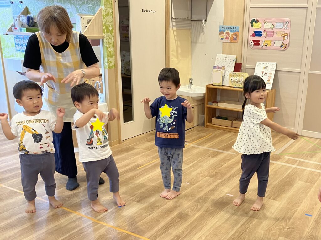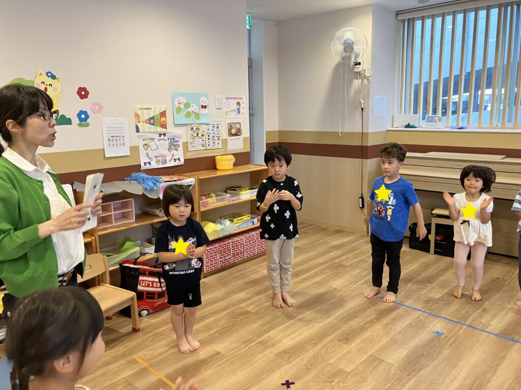 18日(水)のリトミックでは、季節の歌で『カエルの合唱』『たなばたさま』を歌いました!