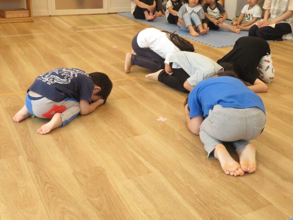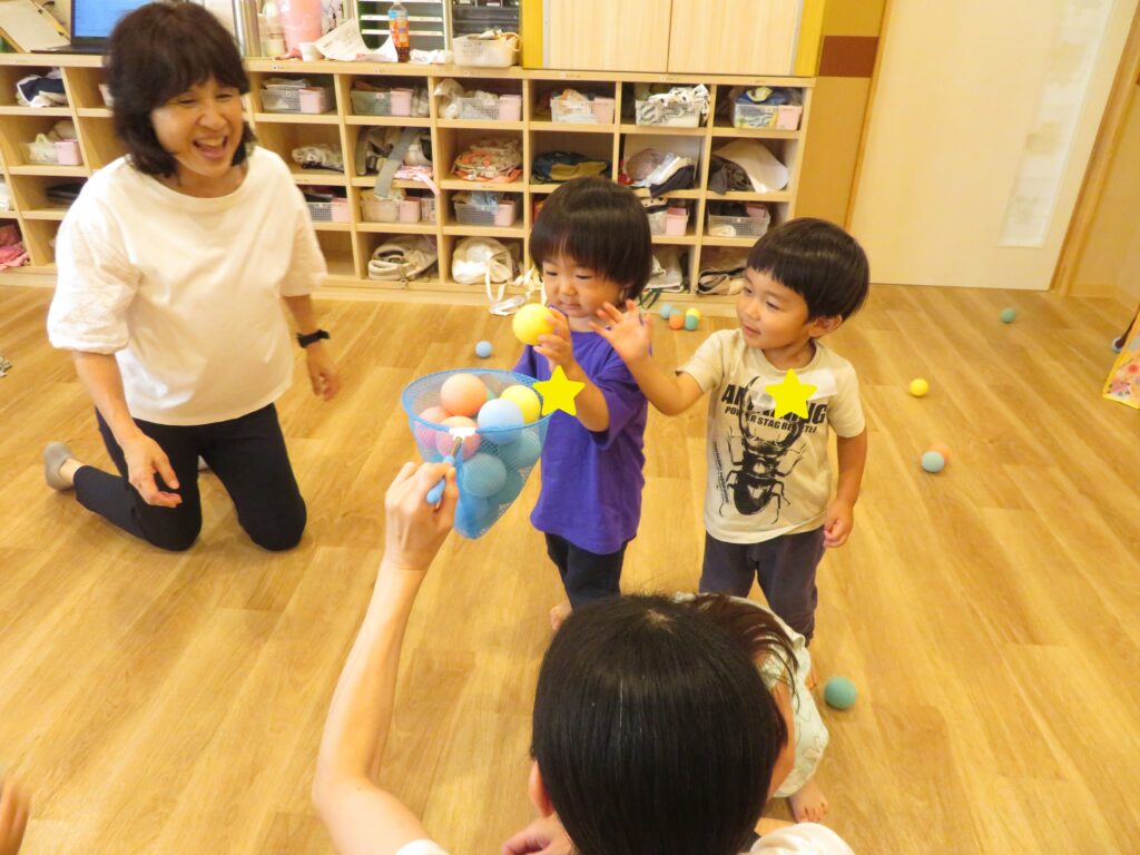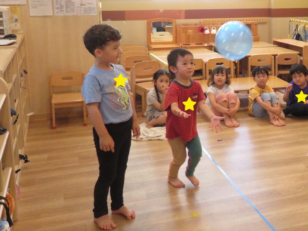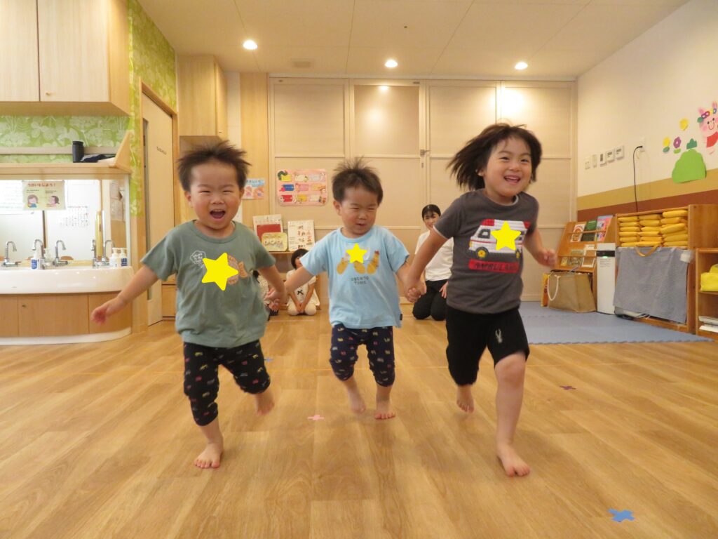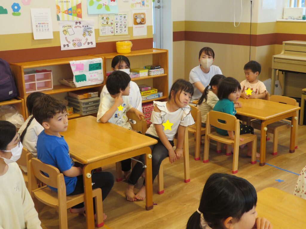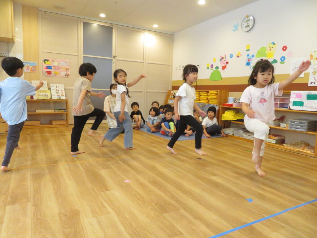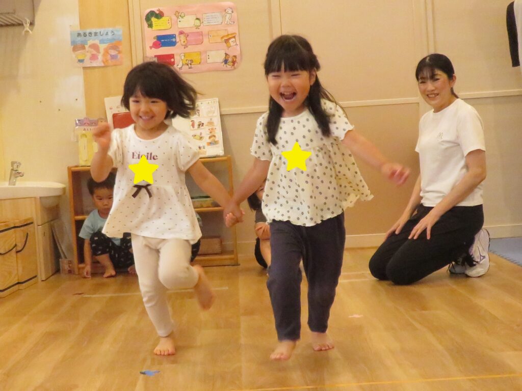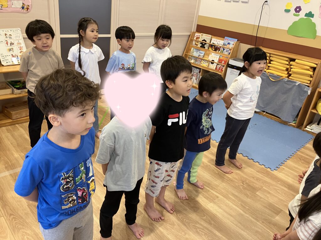 18日(水)のリトミックでは、季節の歌で『カエルの合唱』『たなばたさま』を歌いました!