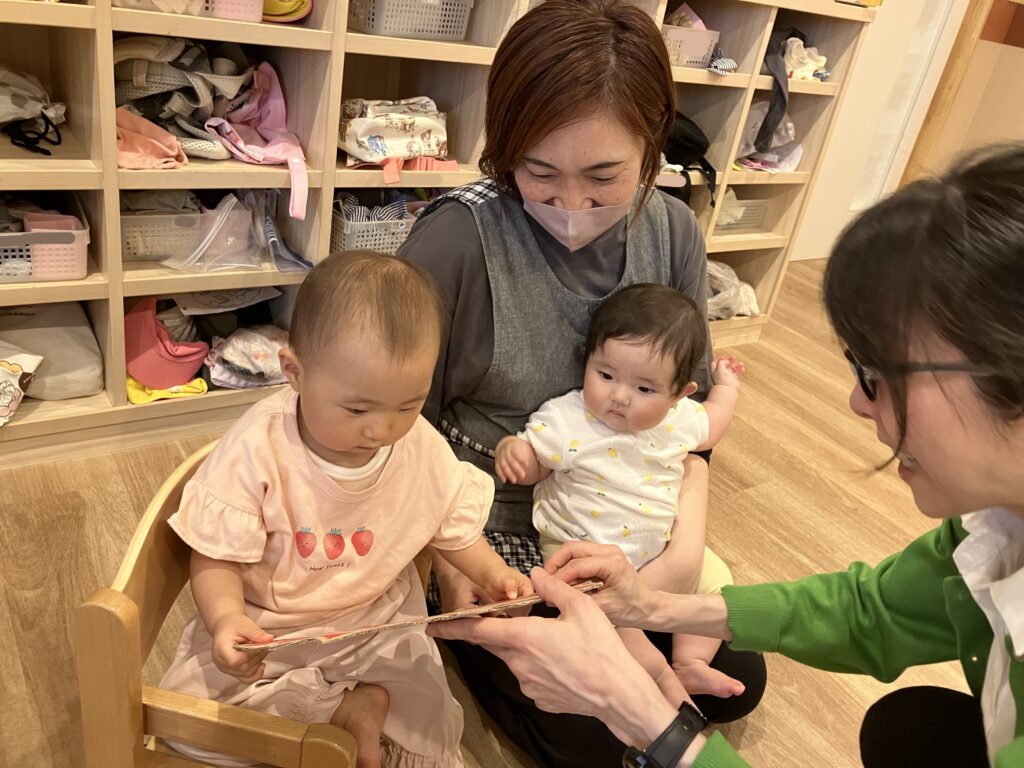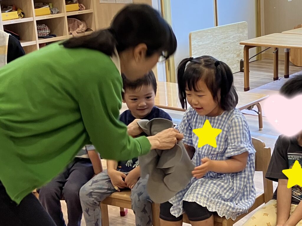 初めての親子英語に少し緊張していましたが、歌を歌いながら触れ合い遊びをしたり、動物の名前や鳴き声の英語を練習しました!