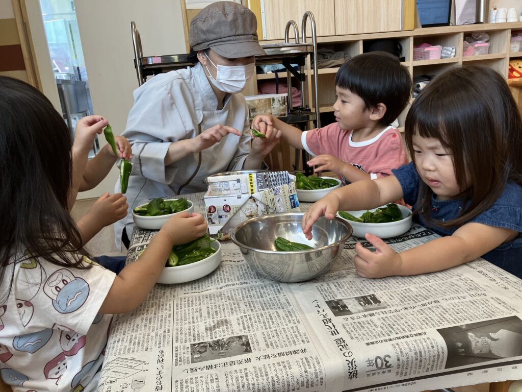 6月30日(月)に、自分たちでお世話をして育てたピーマンを収穫し、種取りをしました♪