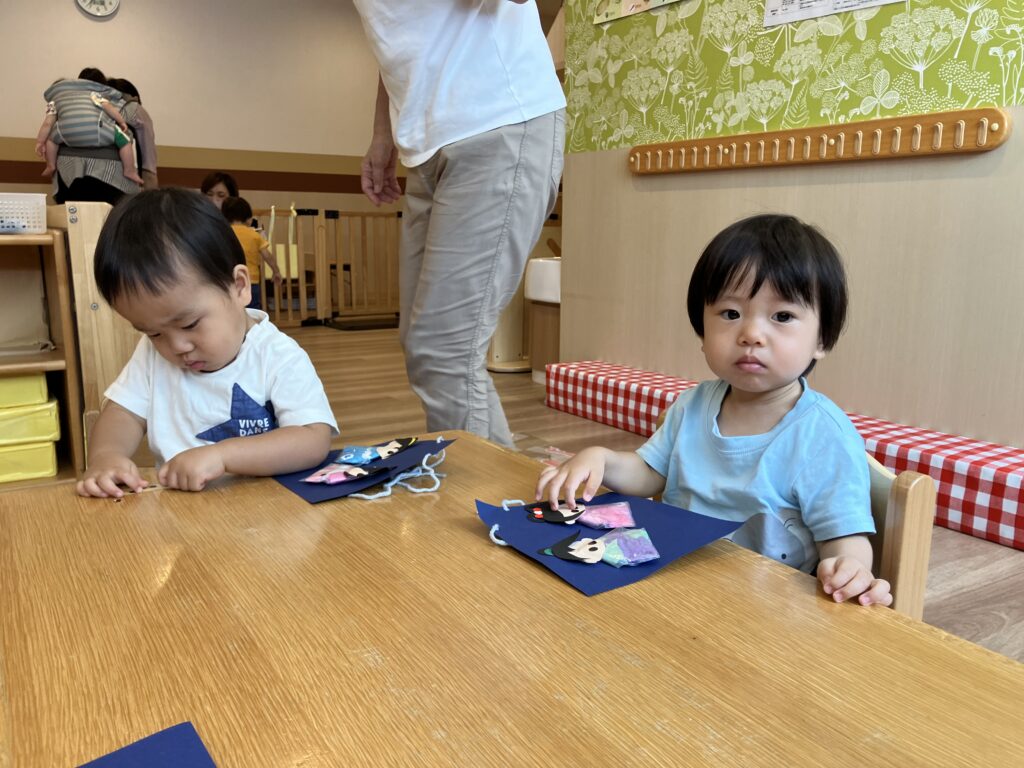 さくら組では、絵本を読み、織姫様と彦星様の製作を完成させ、天の川にお星さまを貼りました!