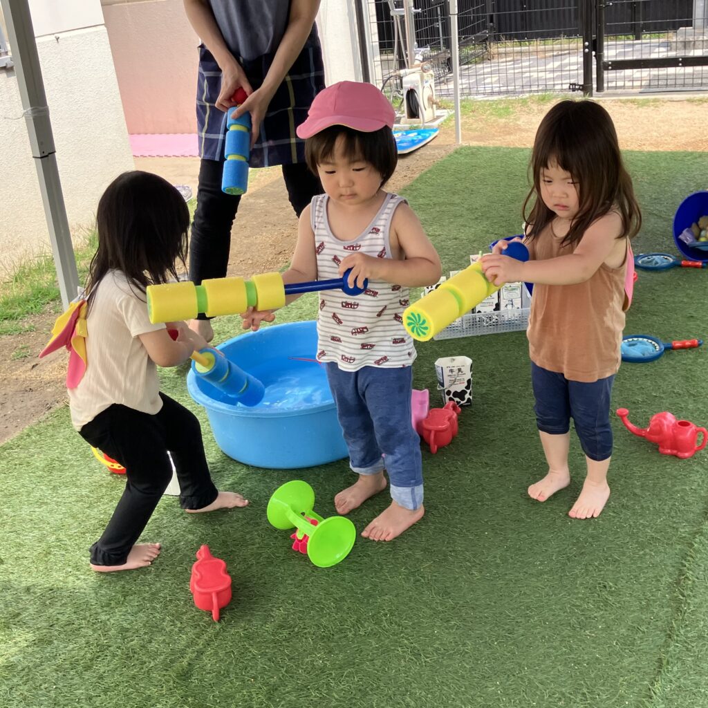 23日(月)から夏遊びが始まりましたが、あいにくの雨でお外に行くことができず…