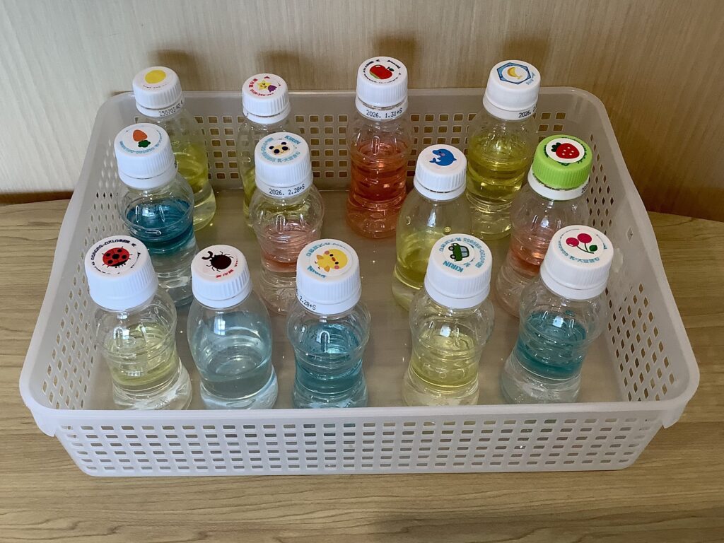 事前に好きな形の小瓶を選んでいた年長さんは「どれにしようかな~✨」と迷いながら当日を楽しみにしていました♪