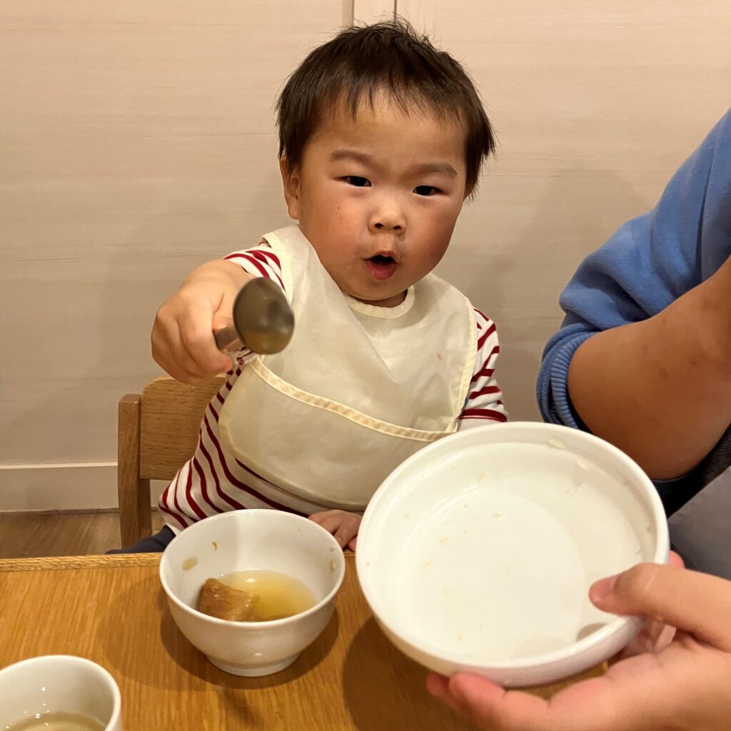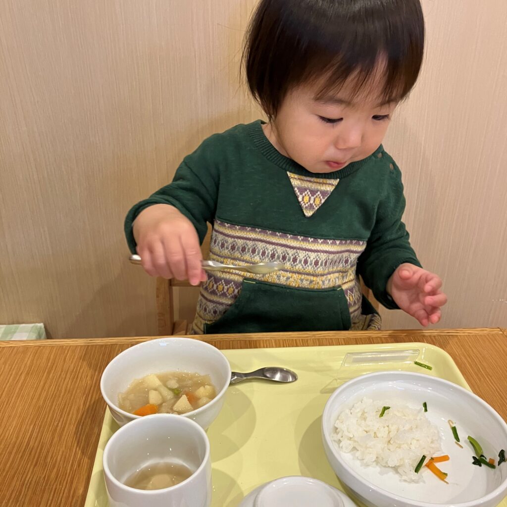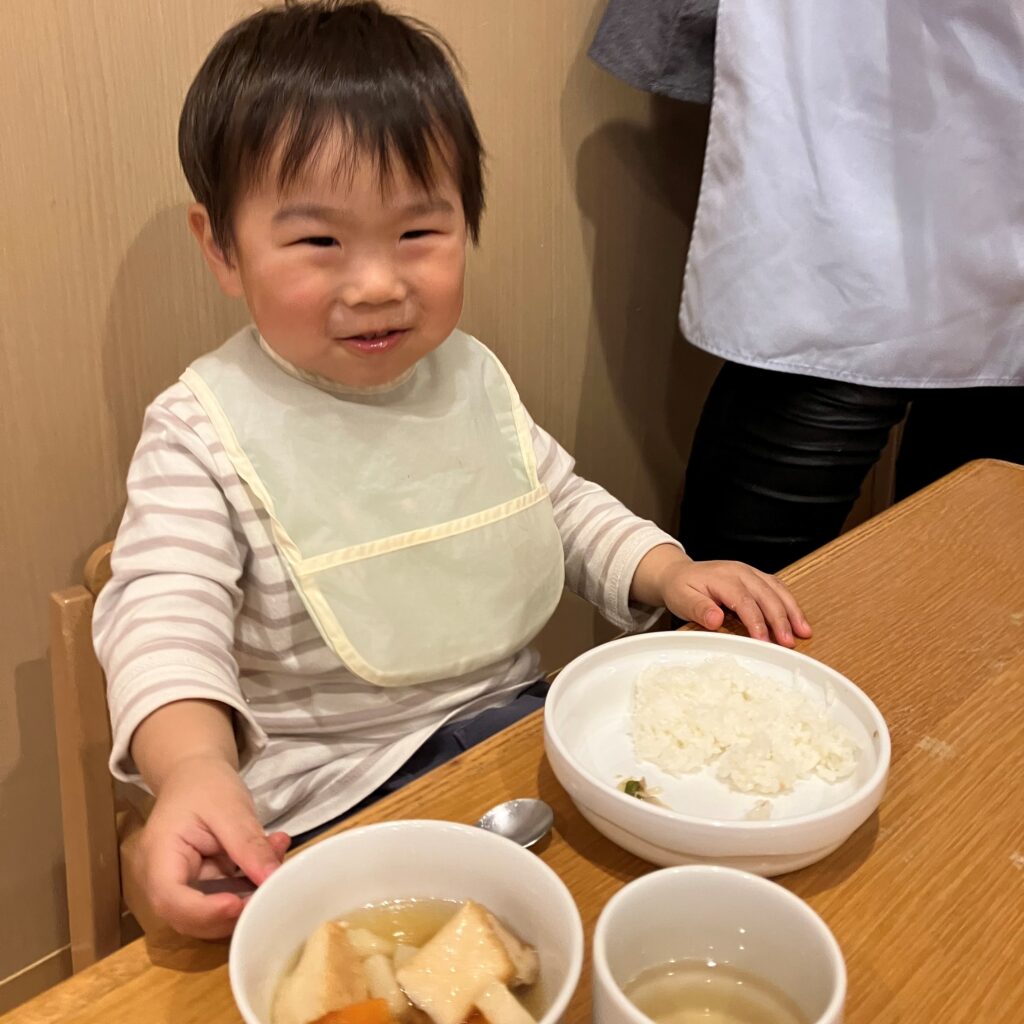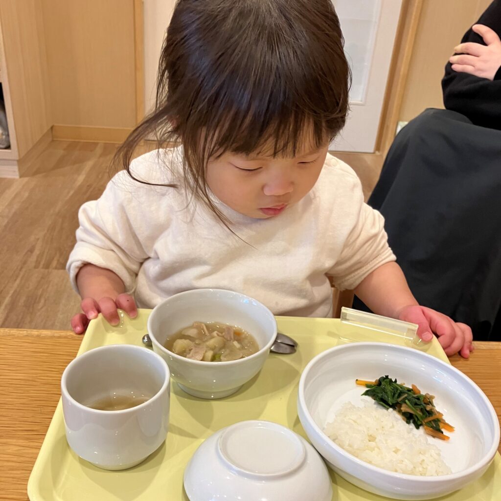 ほうれん草のおかずをみつけると「これ、きれいきれいしたの~!🤩✨」と、自分たちがお手伝いしたほうれん草を嬉しそうに見たり、1番に食べたりと、普段よりも興味を持っていた1歳児さんでした♡