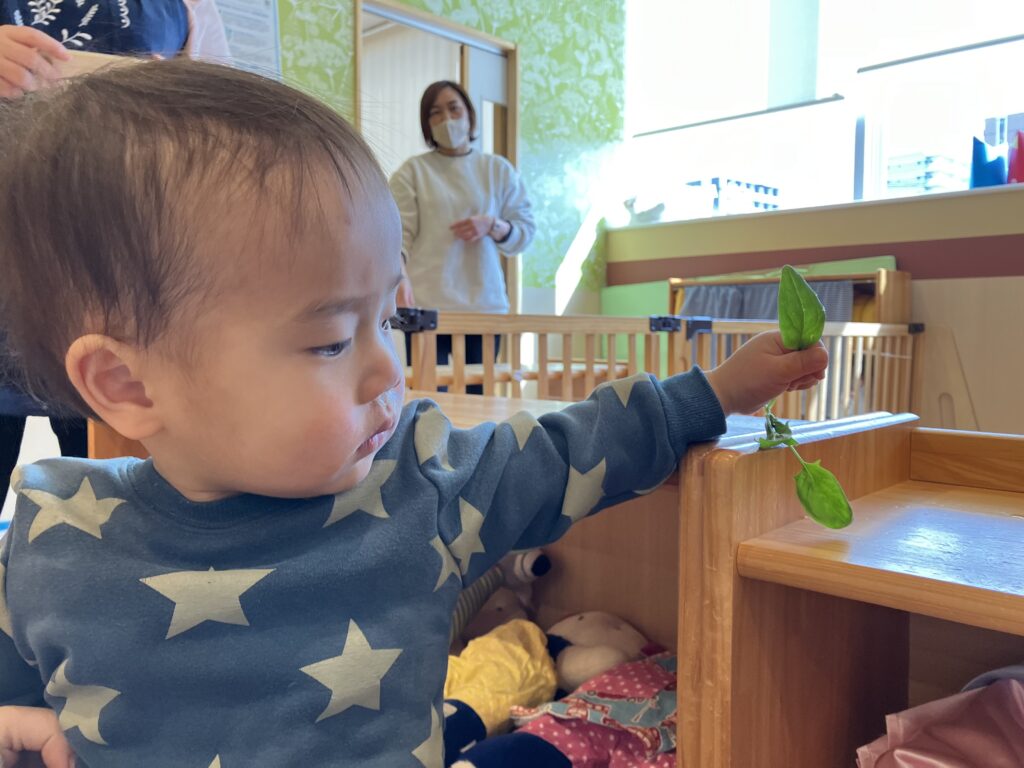 少しずつ見慣れてくると、自分からほうれん草を手に取ってみたり、いろんな角度から観察していました🤭