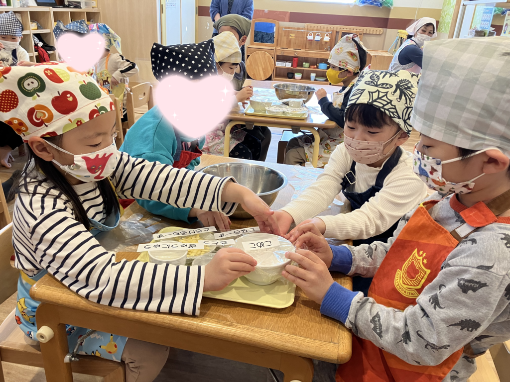 と、ほうれん草が美味しそうなおやつに変わっていく様子を見て嬉しそうなひまわり組さん🥰