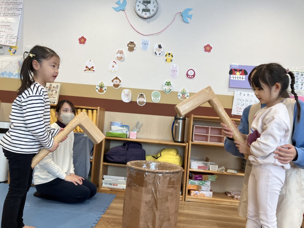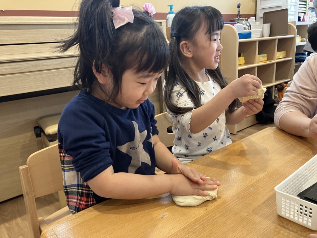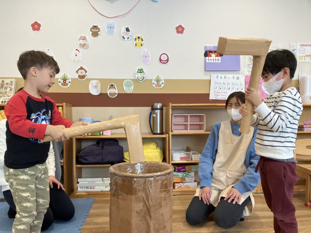 8日(水)に、小麦粉を使って『お餅つきごっこ』をしました!