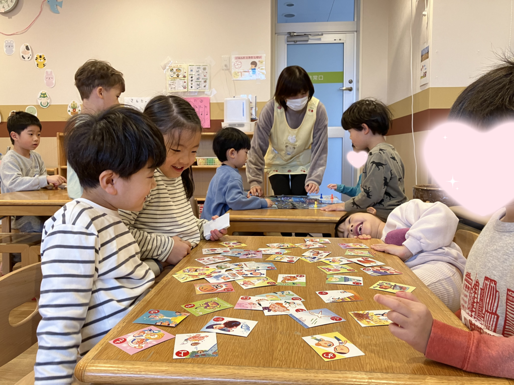 歳児別にわかれて、カルタや手作りの羽子板で遊びました♪
