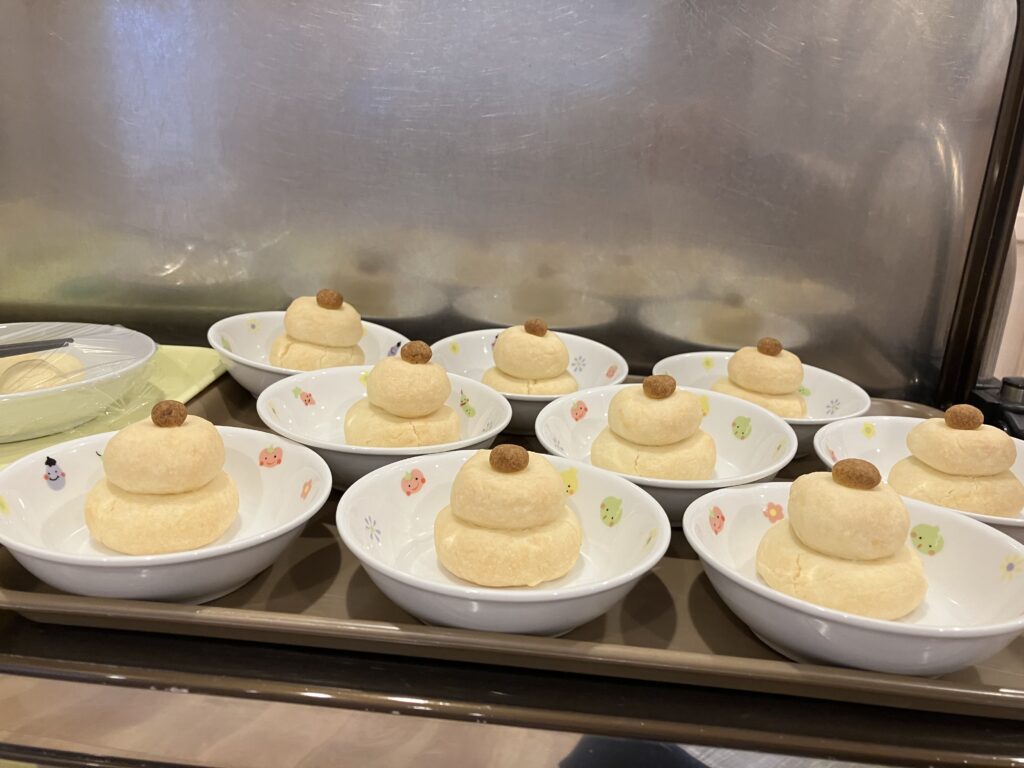 午後おやつには、かわいい鏡餅風スノーボールが出てきました❤