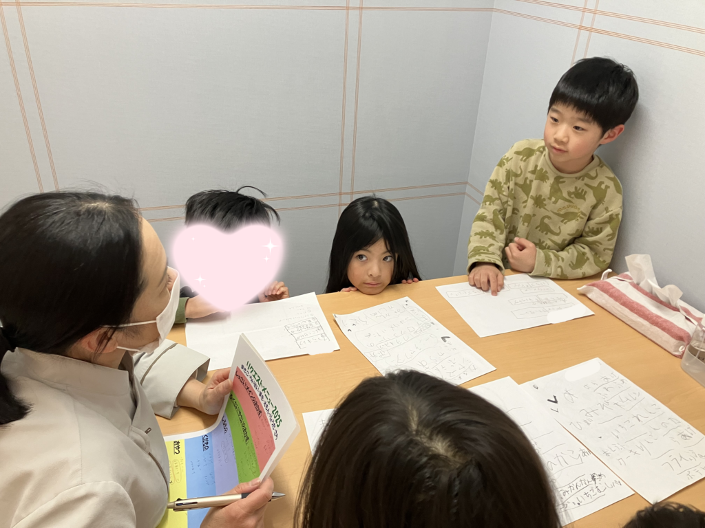 4日(火)の午睡後に、年長さんと給食の先生でリクエストメニューの話し合いをしました♪