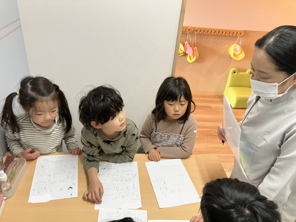 「こんにちは!よろしくお願いします!」と元気に挨拶し、前回同様自分の名前のひらがなを書き始めました✨