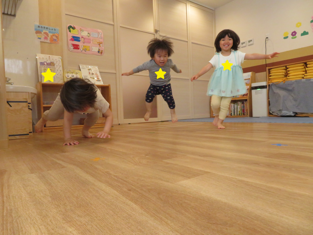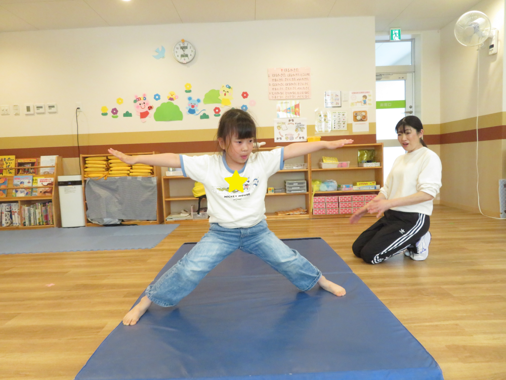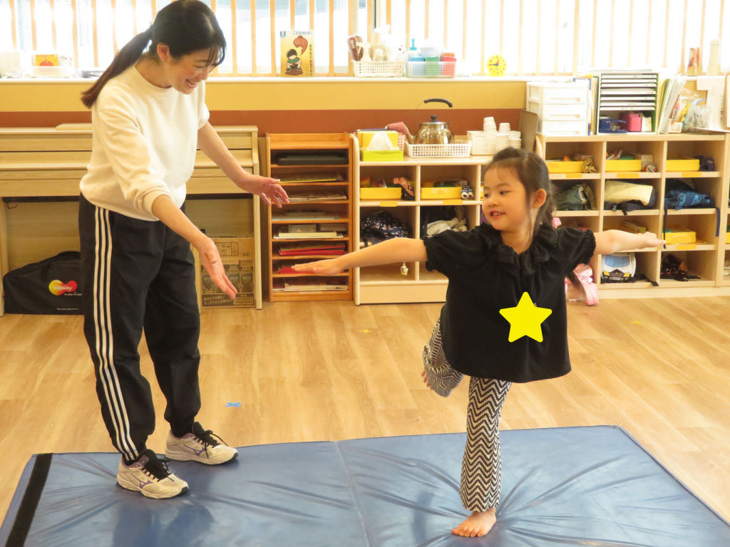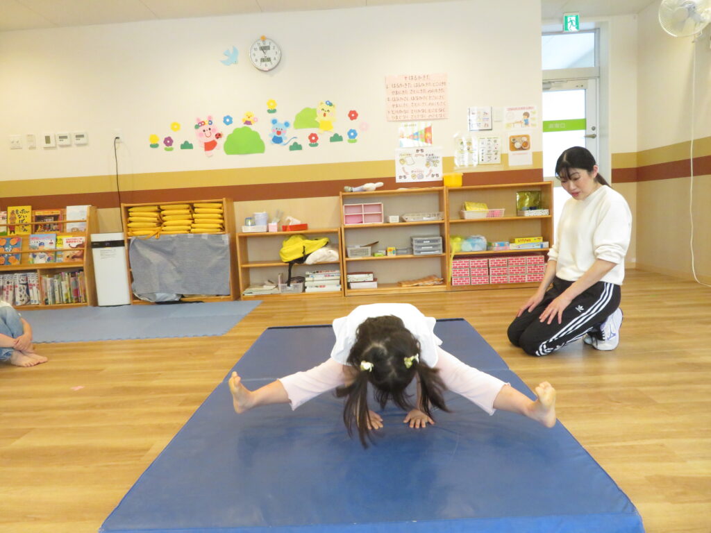 22日(火)、新年度初めての体操は、進級した喜びを先生と分かち合いながらのスタートになりました♡
