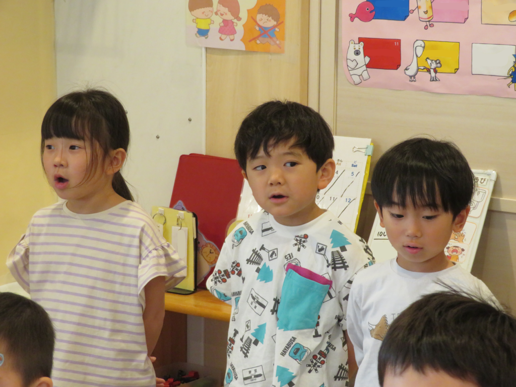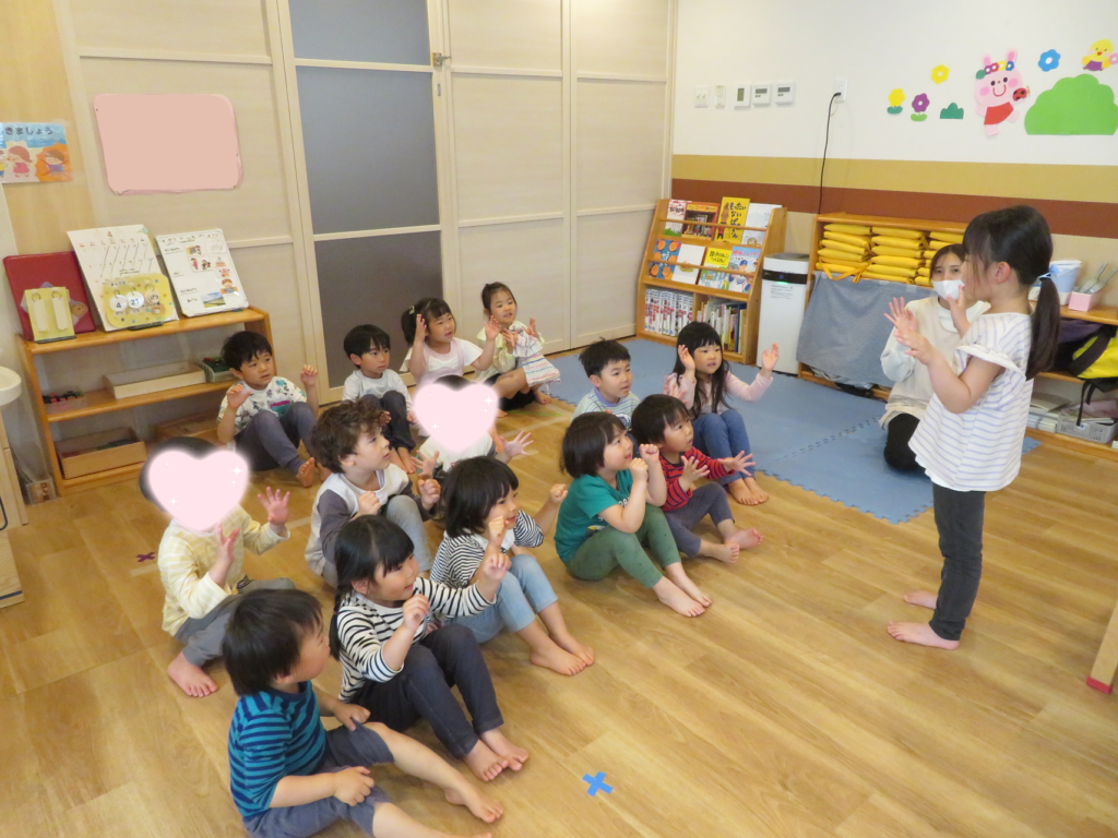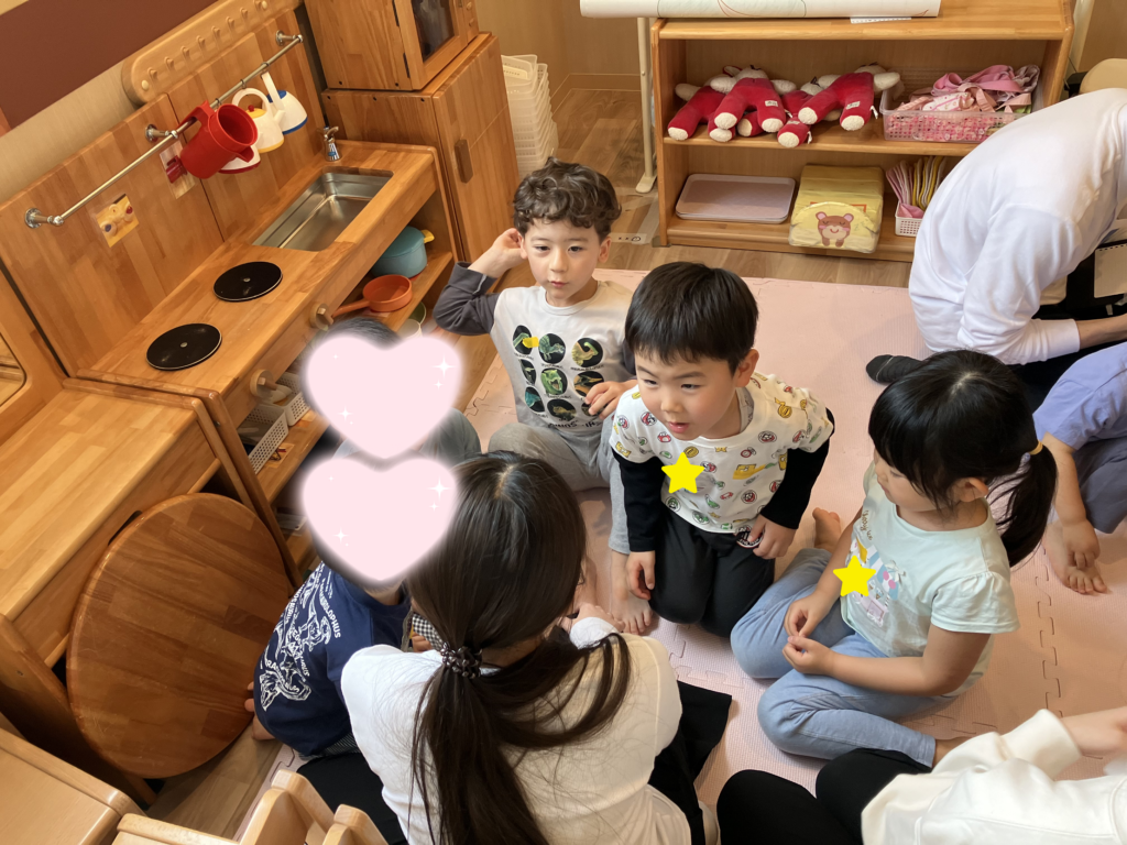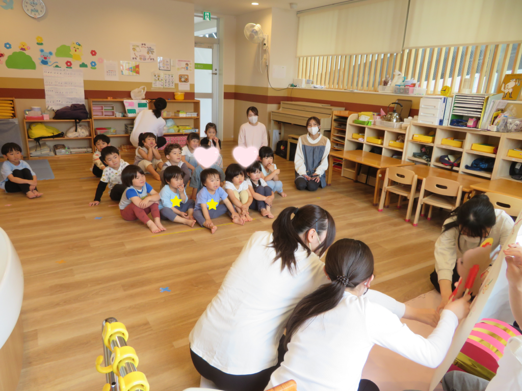 歌に合わせてペープサートをした後に、いつも自分たちの成長を見守ってくれているお家の方や周りの方たちがいるという話をしました🥰