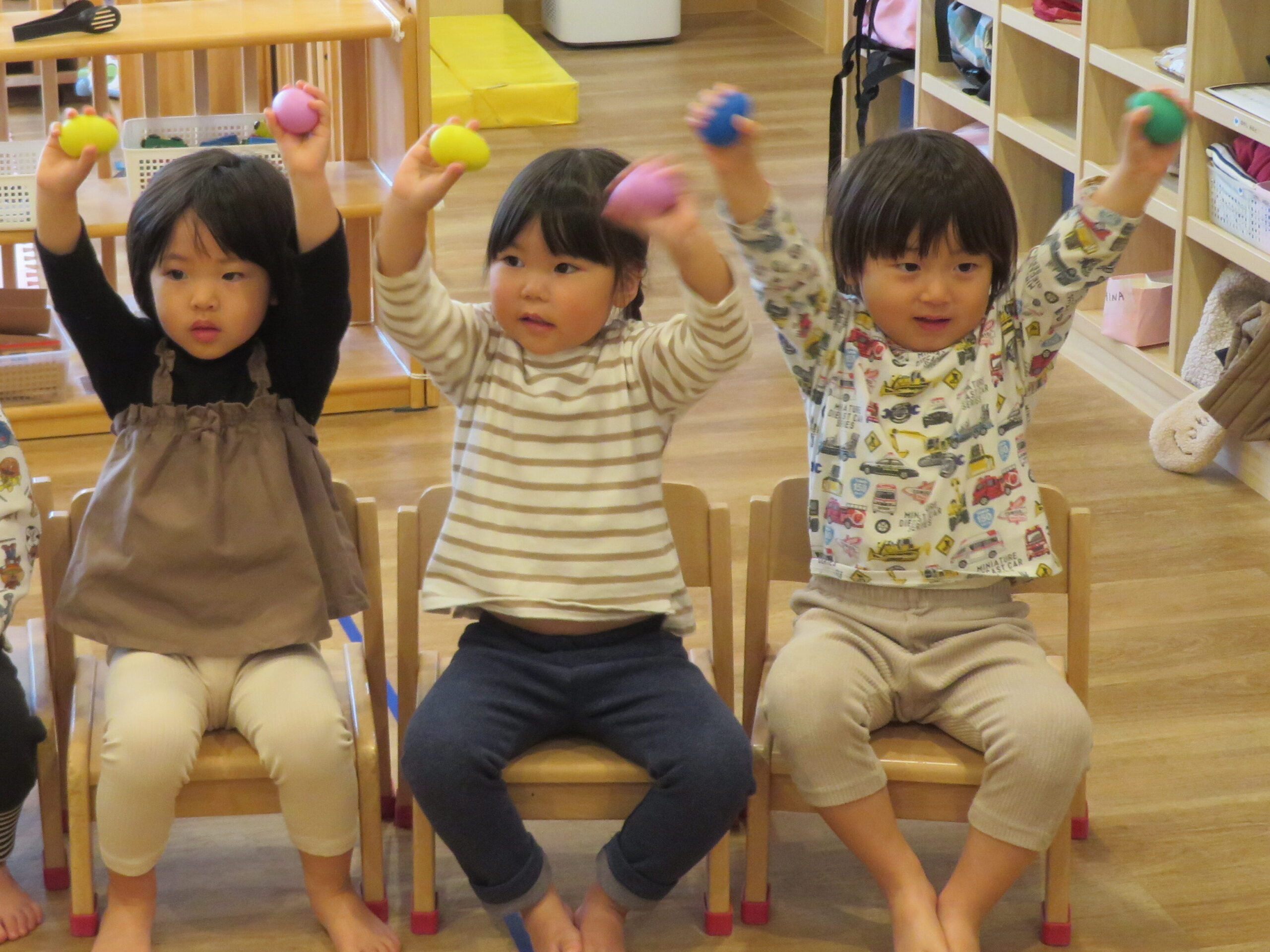 さくらぐみは、エッグシェイカーを使って『あわてんぼうのサンタクロース』