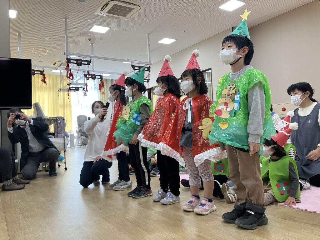 クリスマスソングに合わせて入場し、さくら・ひまわり共に、衣装のこだわりポイントを説明😊
