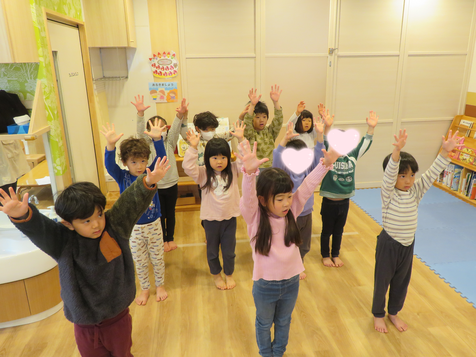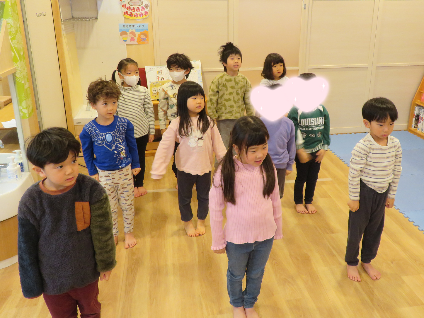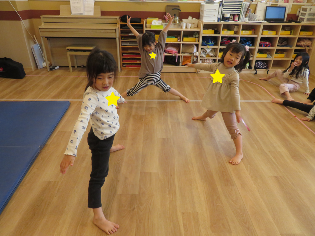 拍数を口で数えながら、それに合わせて腕を動かすという少し難しい動きでしたが、先生の説明を聞いてお手本を見ながら楽しんで取り組んでいました🤭🎵