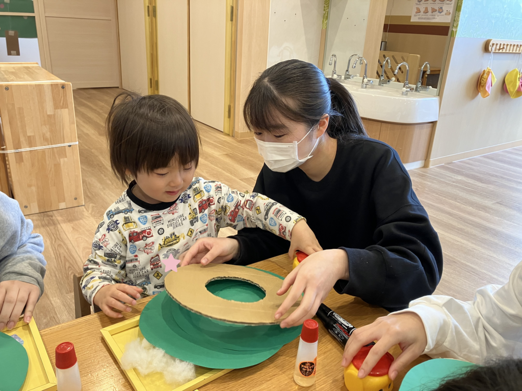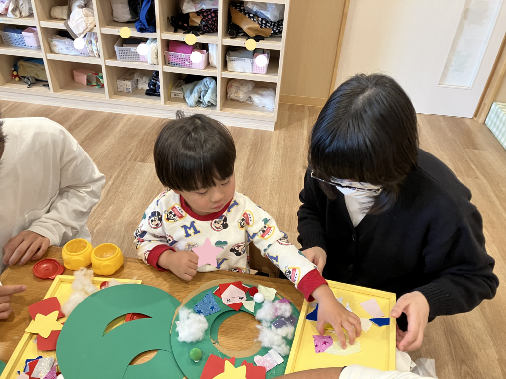 リース作りでは、のりやボンドを使って可愛く飾りつけ♪🎅🏻