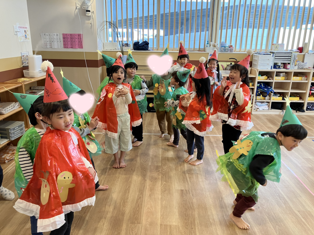 さくら組では、先生からのクリスマスプレゼントで可愛いカードを受け取った際に「Thank you!」と英語でお礼を言える子も増えてきました😳✨