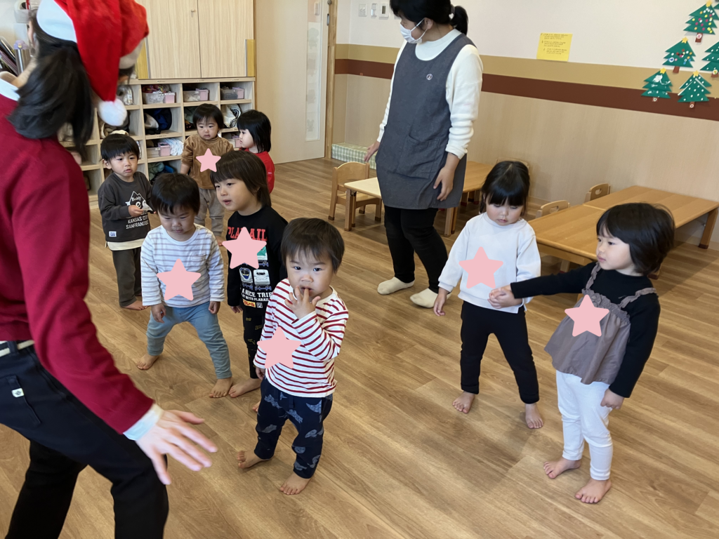 緊張しながらも、サンタさん登場に喜ぶ子どもたち♡
