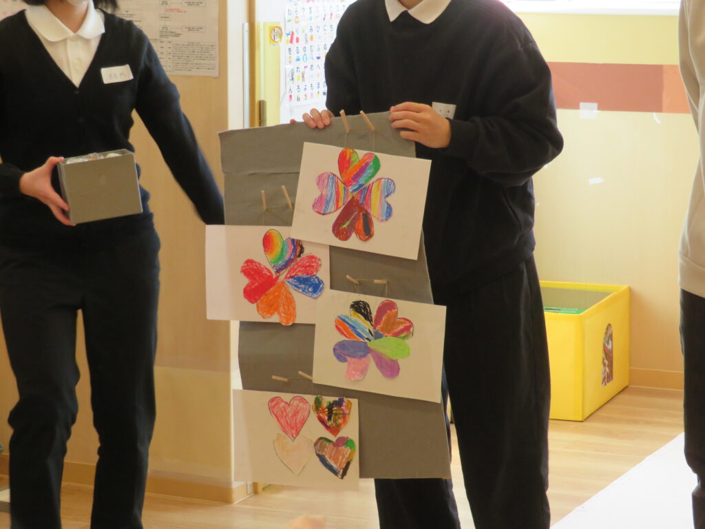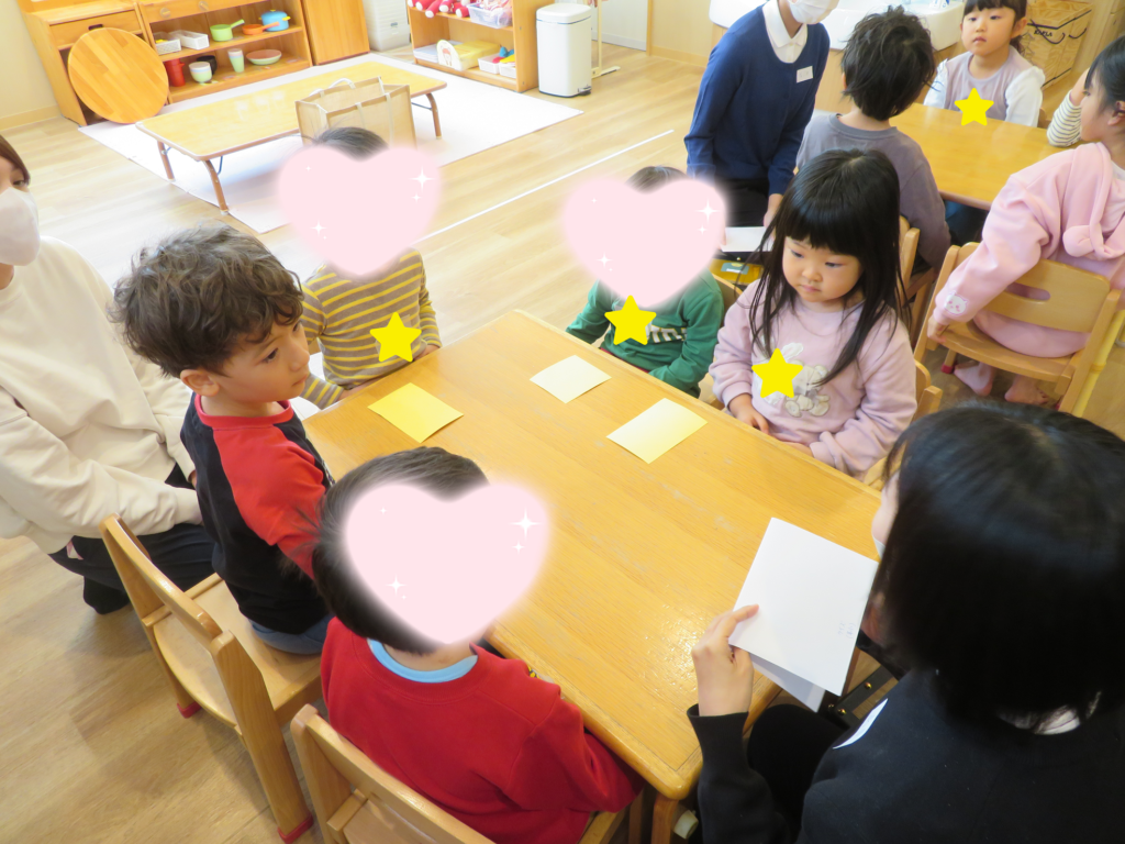 ひまわり組では、日頃の感謝を込めて1人ずつハートを先生に渡しました❤