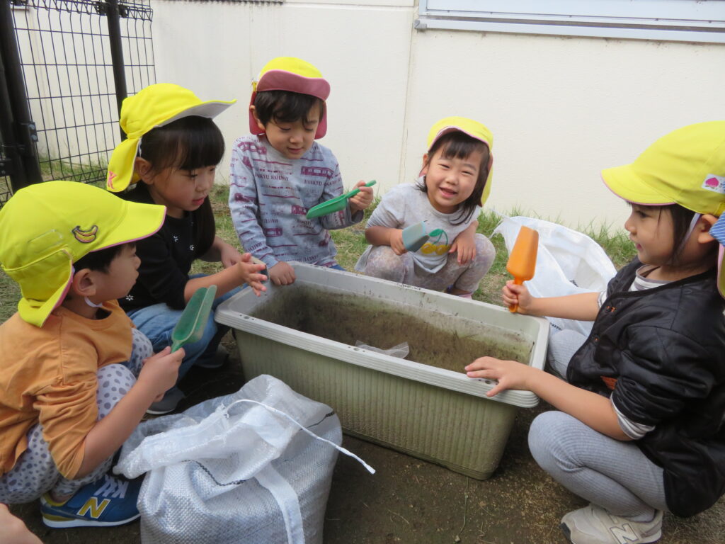 グループ毎に協力しながら土を入れ、種を植えていきます☆彡
