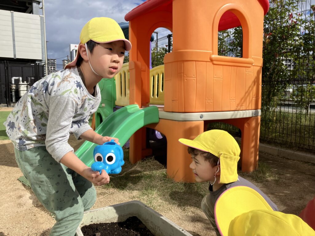 ほうれん草に優しく声を掛けたり、出来上がった食材で作る料理をお友だちと話し合う姿が見られました♡