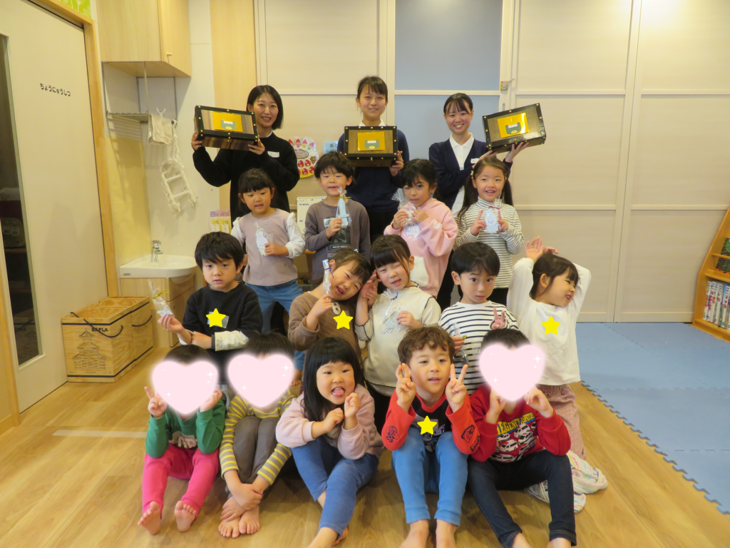 クイズに正解後、カードをもらい、後ろに描いてある絵を完成させて見事宝物をゲット!✨