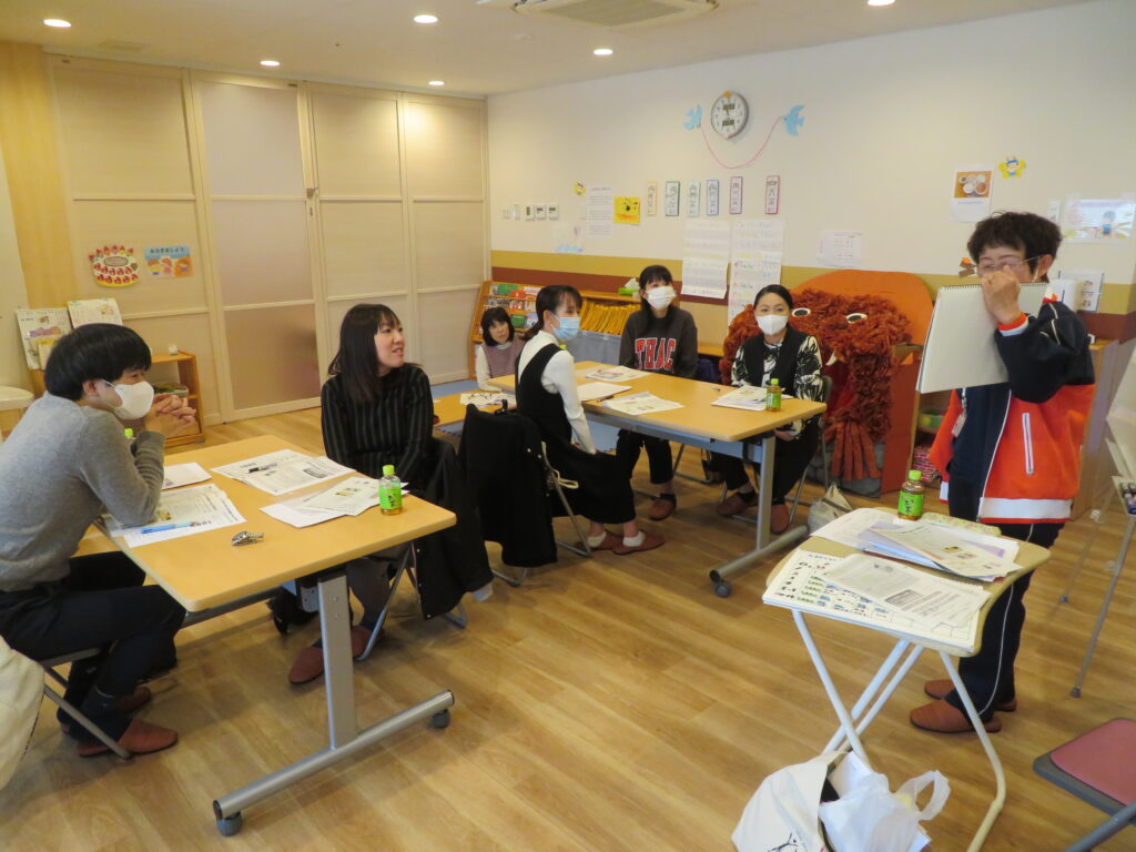 テーブル毎で作った作品を学生さんがみんなに発表した後は、的当てゲームスタート♪
