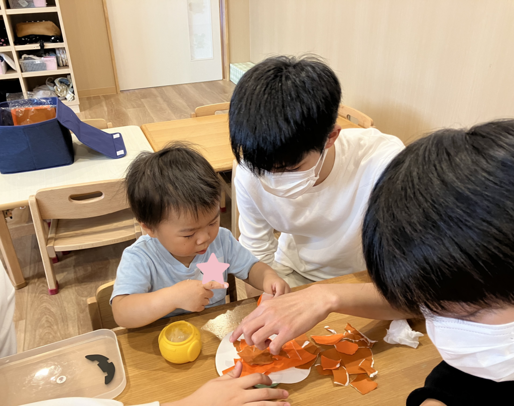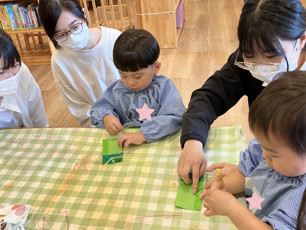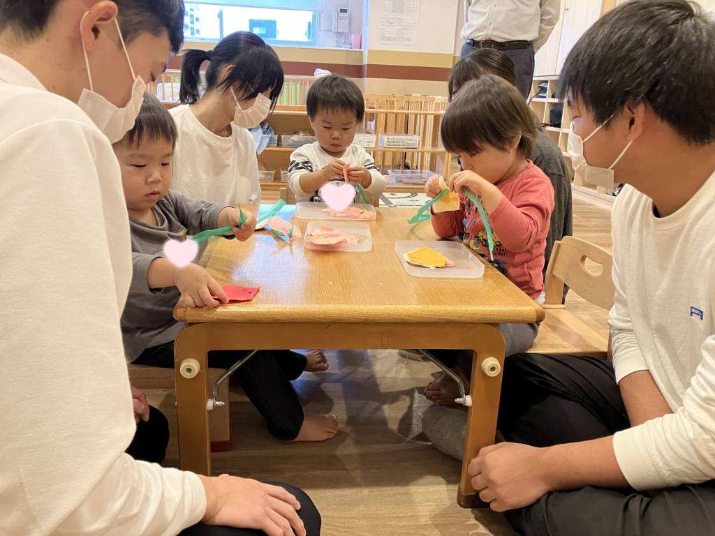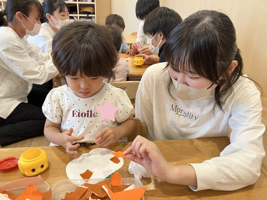 金曜日に姫路医療専門学校 作業療法士科1年の学生さんが見学実習に来ており、2歳児さんと製作や自由遊びをしてくれています♪