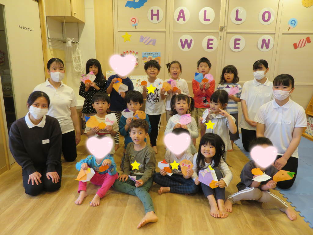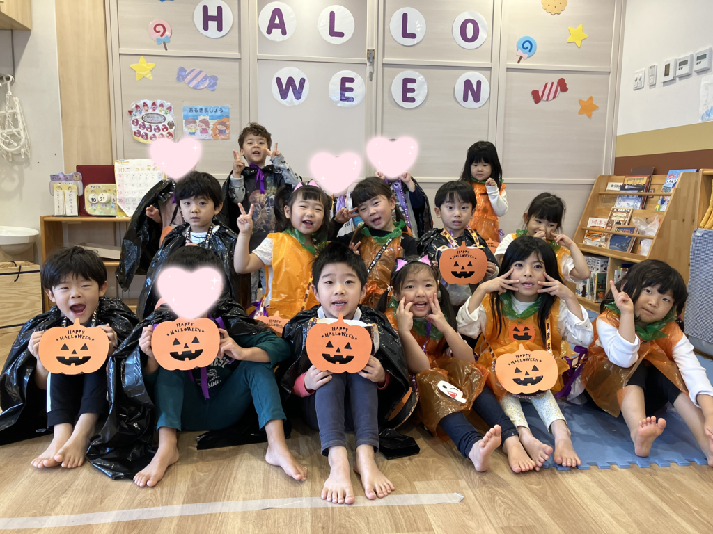 ひまわり組では、手作りの仮装をして「Happy Halloween!」と元気にご挨拶🤗