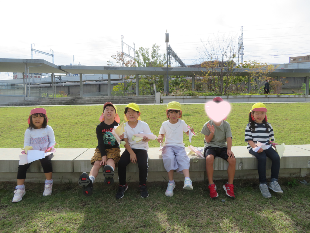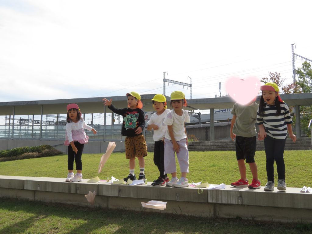 そよ風が吹いていたこともあり、風に乗って遠くまで飛んでいく紙飛行機に大興奮の年長さん!