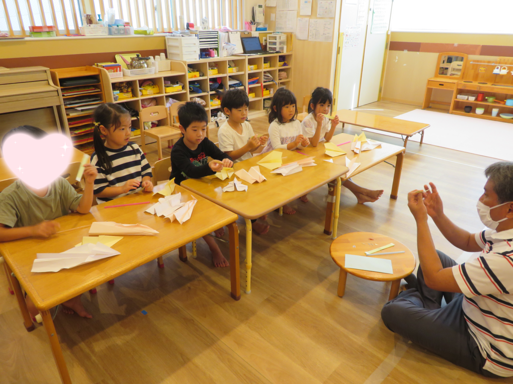 4種類の紙飛行機『一番飛ばないと思う紙飛行機』『一番飛ぶと思う紙飛行機』『園長先生直伝の紙飛行機』『園長先生直伝のチューブプレーン』製作に挑戦!