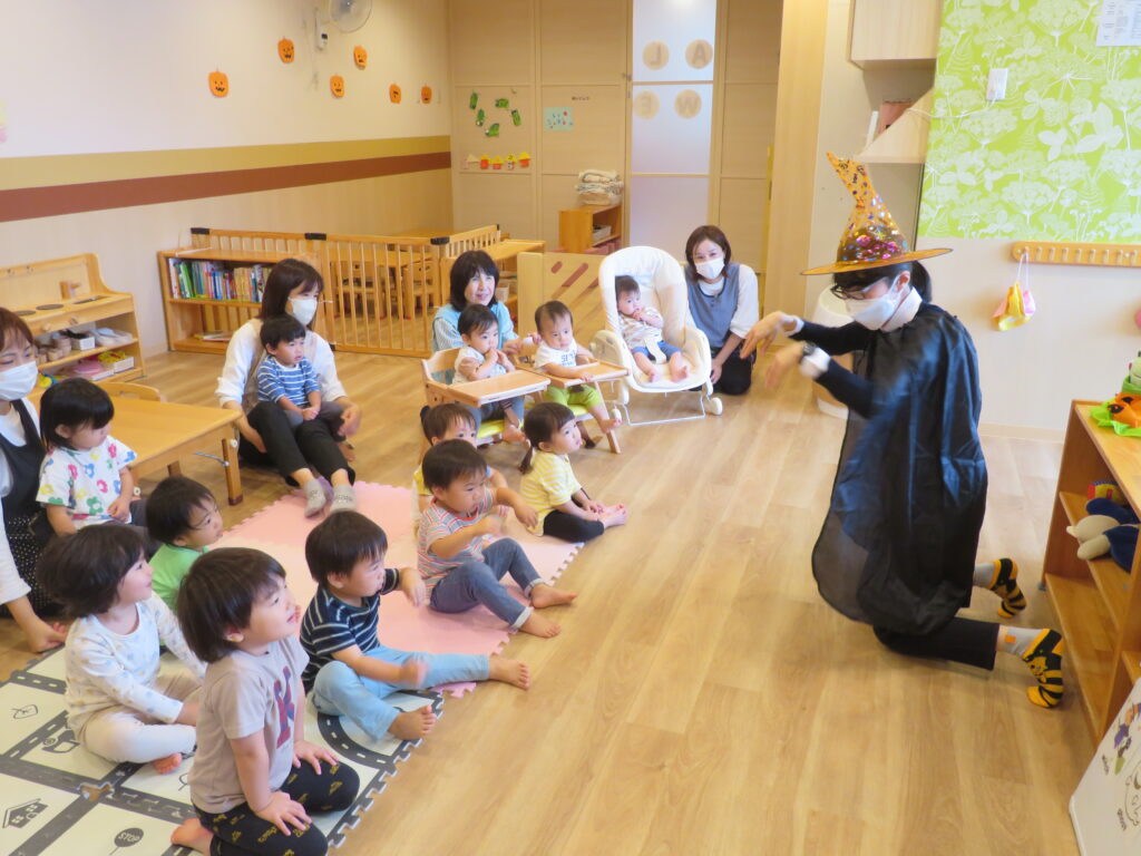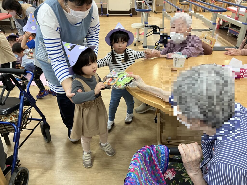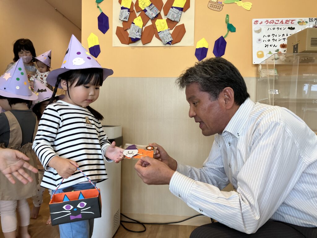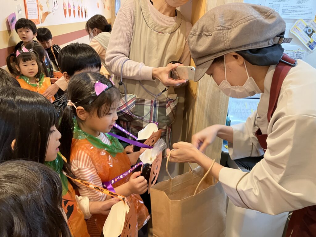 園内では手作りの仮装をした子どもたちが、事務室や給食室に「トリックオアトリート!」と言ってお菓子をもらいに来ました!