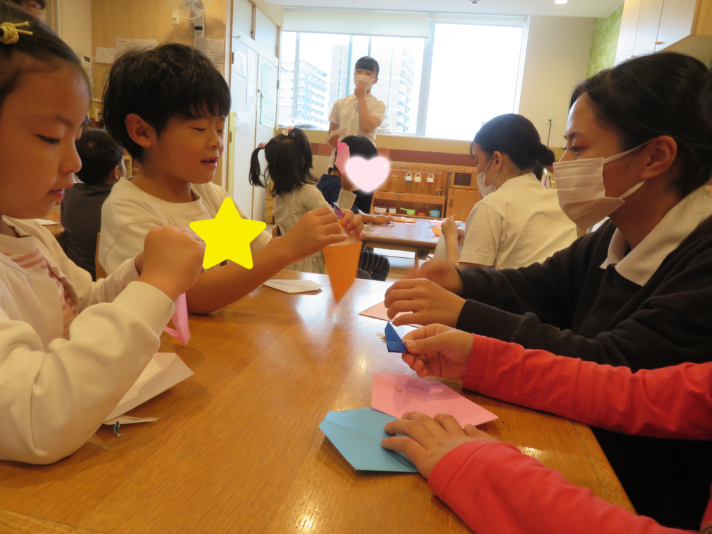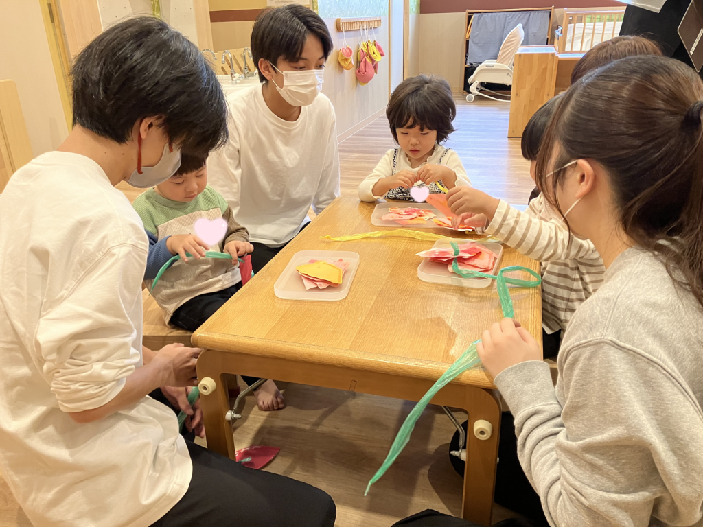 最後は学生さん手作りの折り紙をもらい集合写真♡