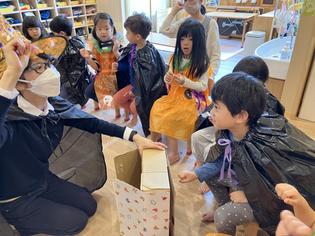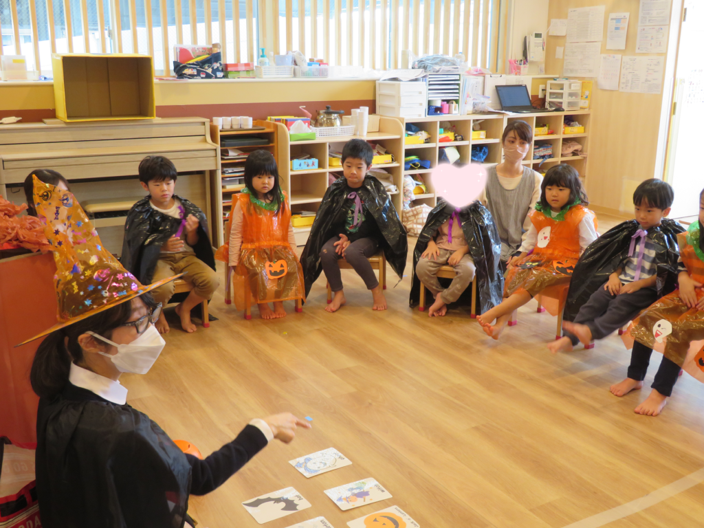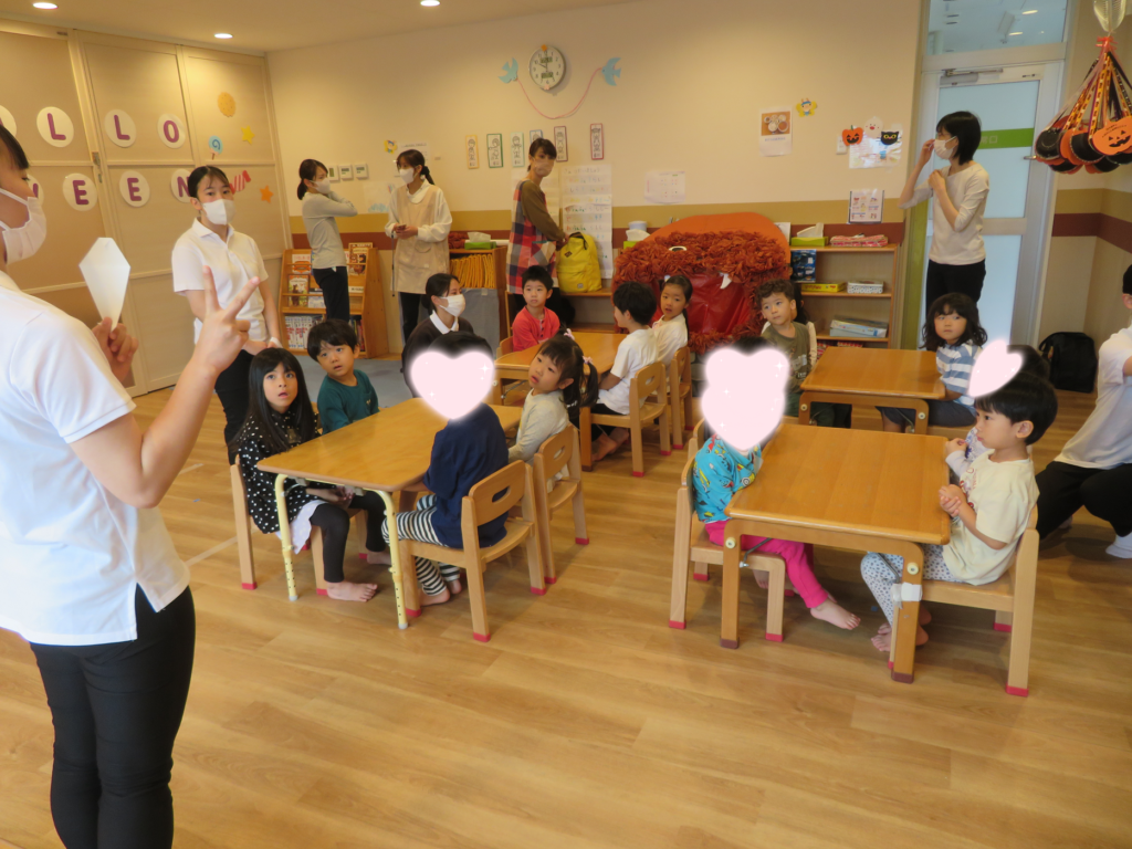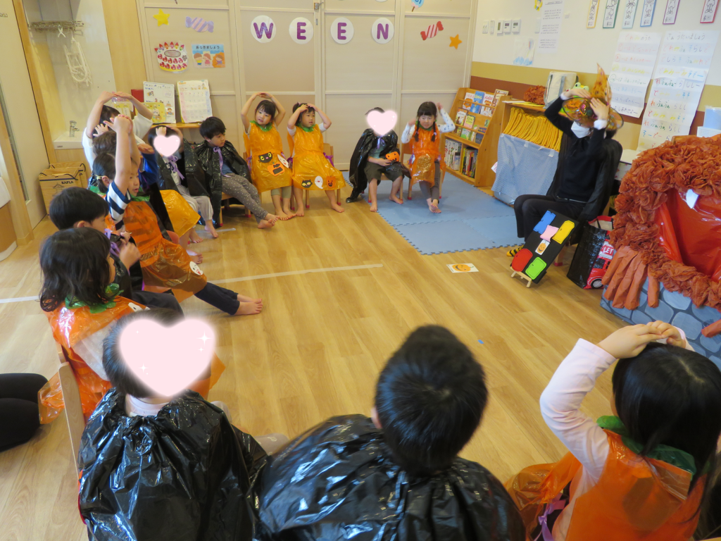 さくら組では、ハロウィンにちなんだ単語を全身を使いながら表現し、覚えていきました♪