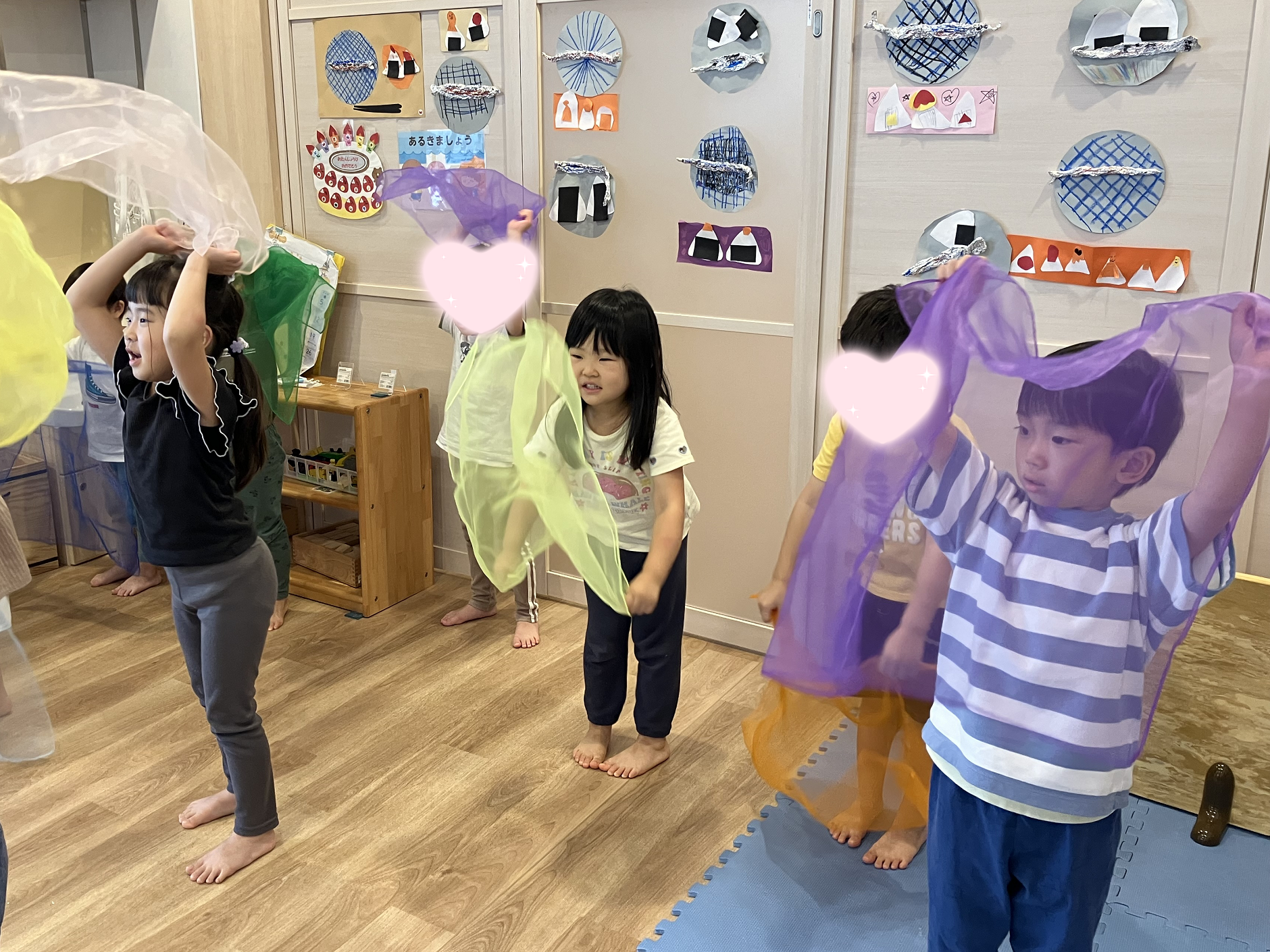 ひまわり組では、オーガンジーを使って『らららぞうきん』🎵