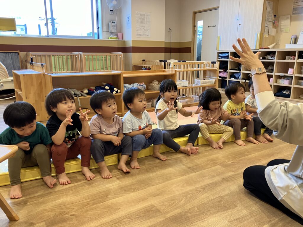 今月の歌『どんぐりころころ』『まつぼっくり』に加え、さくら組では手遊び『大きな栗の木の下で』『グーチーパーでなにつくろう』『やきいもグーチーパー』をしました(○´∀`)✊🏻✌🏻🖐🏻