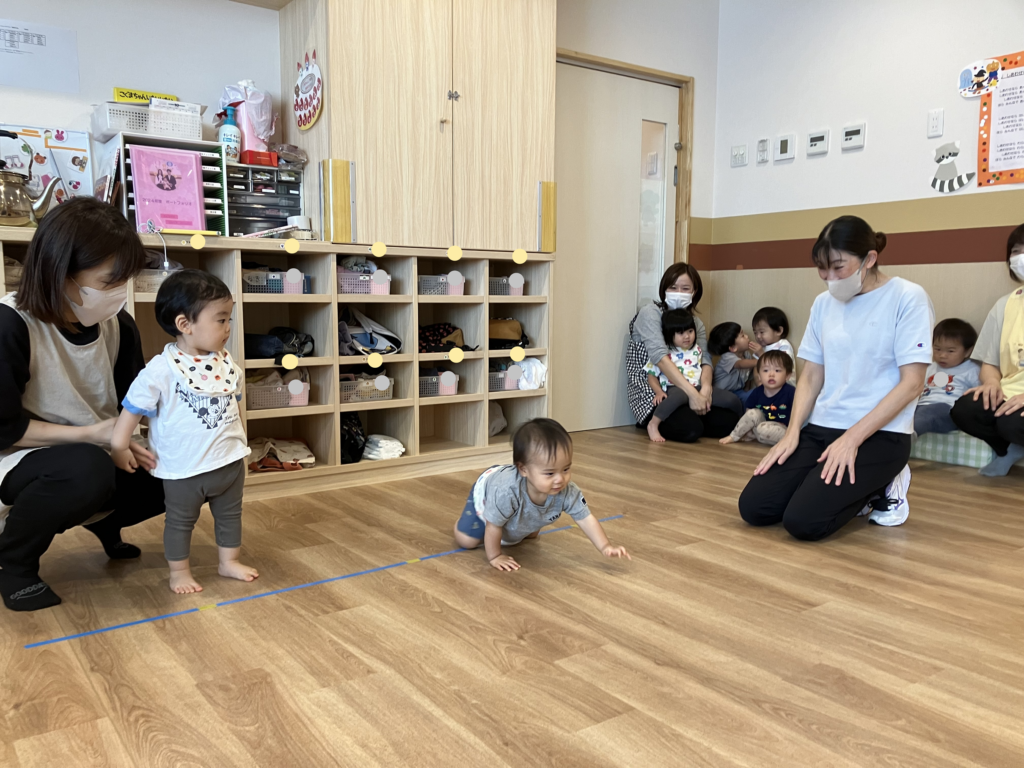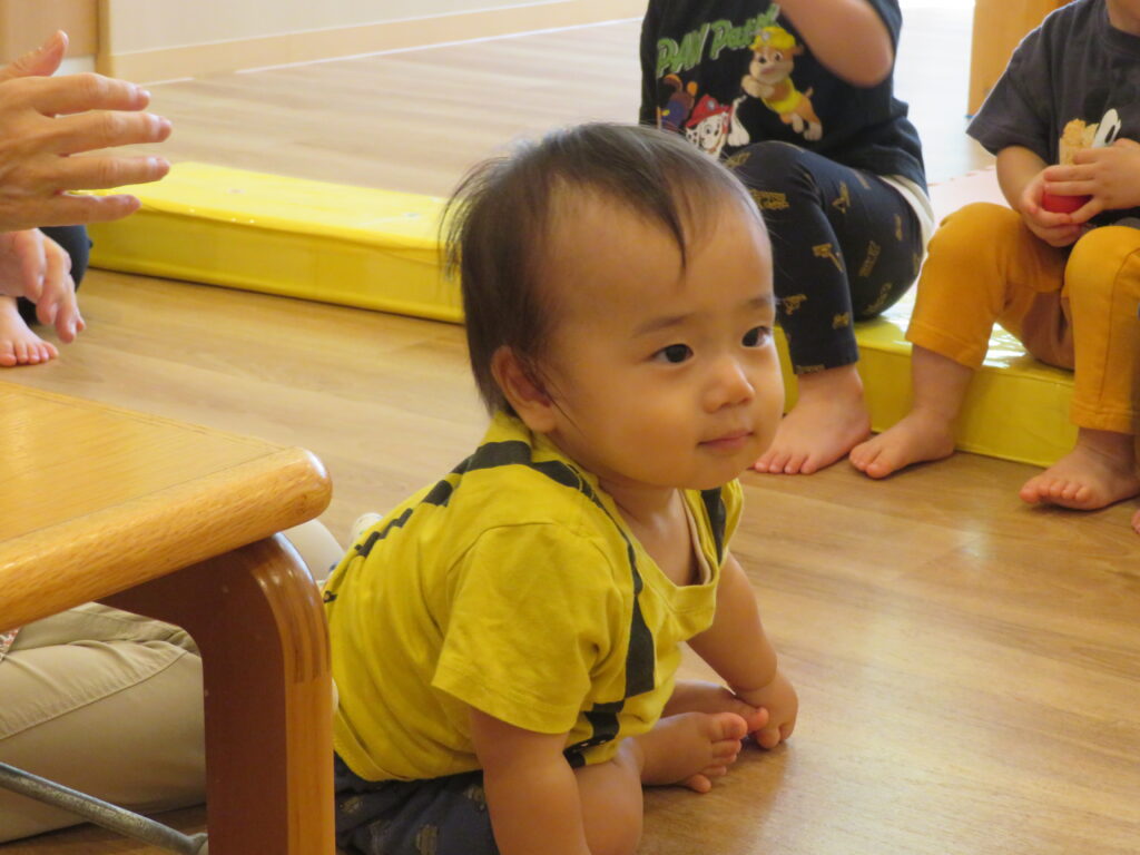 お友だちの楽しそうな姿に、0歳児さんもニッコリ😊
