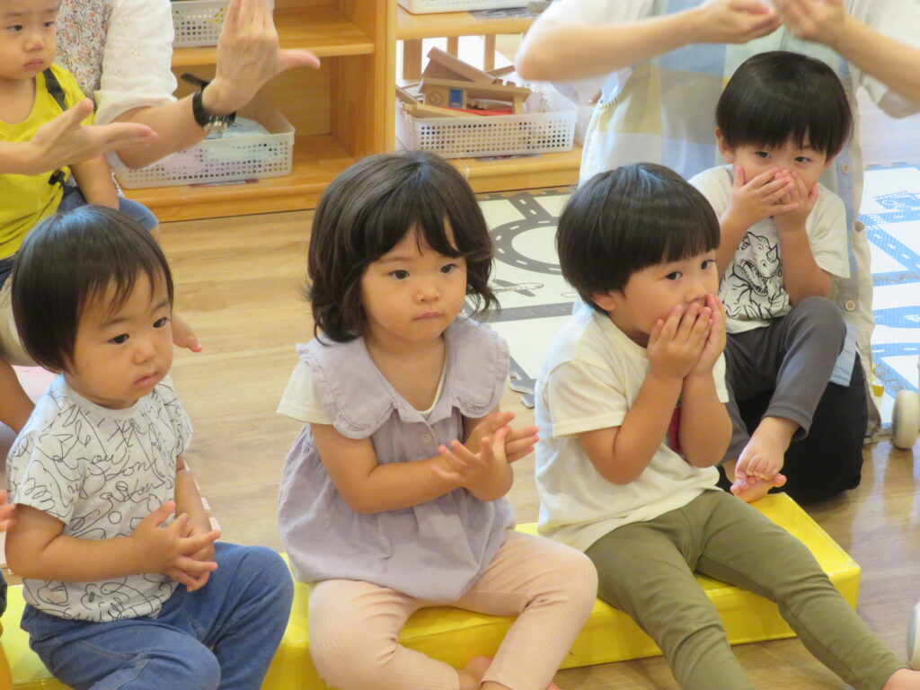 25日(水)のリトミックでは、歌う時に背筋を伸ばして目線を前にし、元気な声で歌えるようになってきた子どもたち!